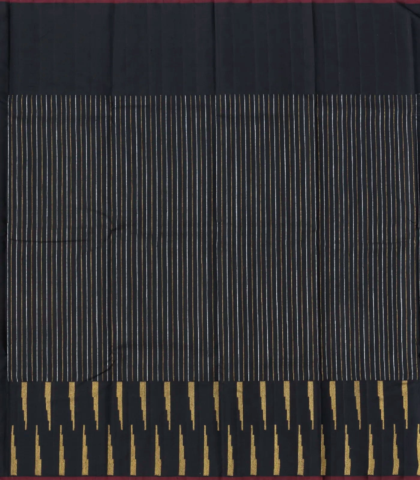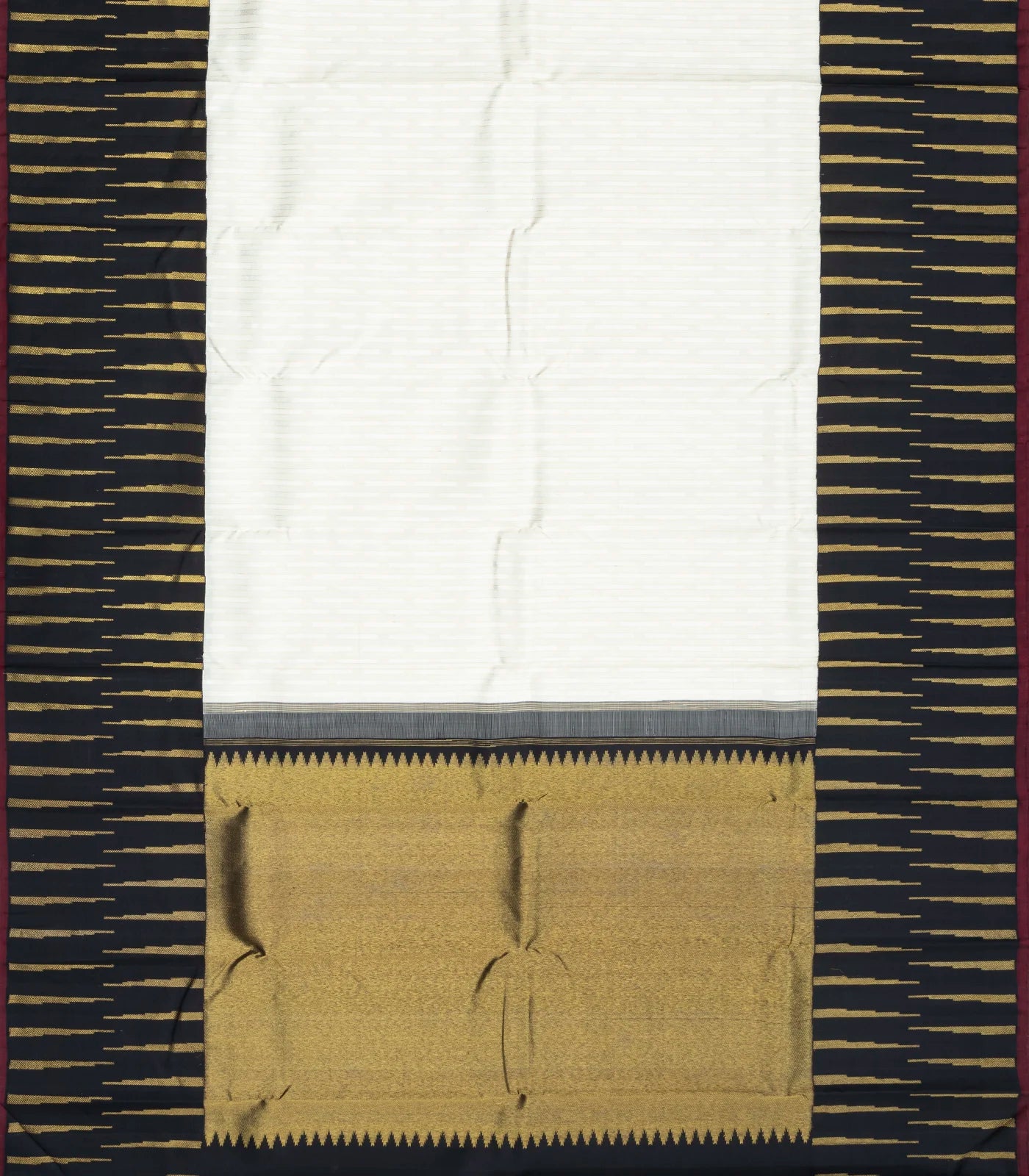 White Handloom Korvai Kanchipuram Silk Saree With Stripes & Black Border-KA13119