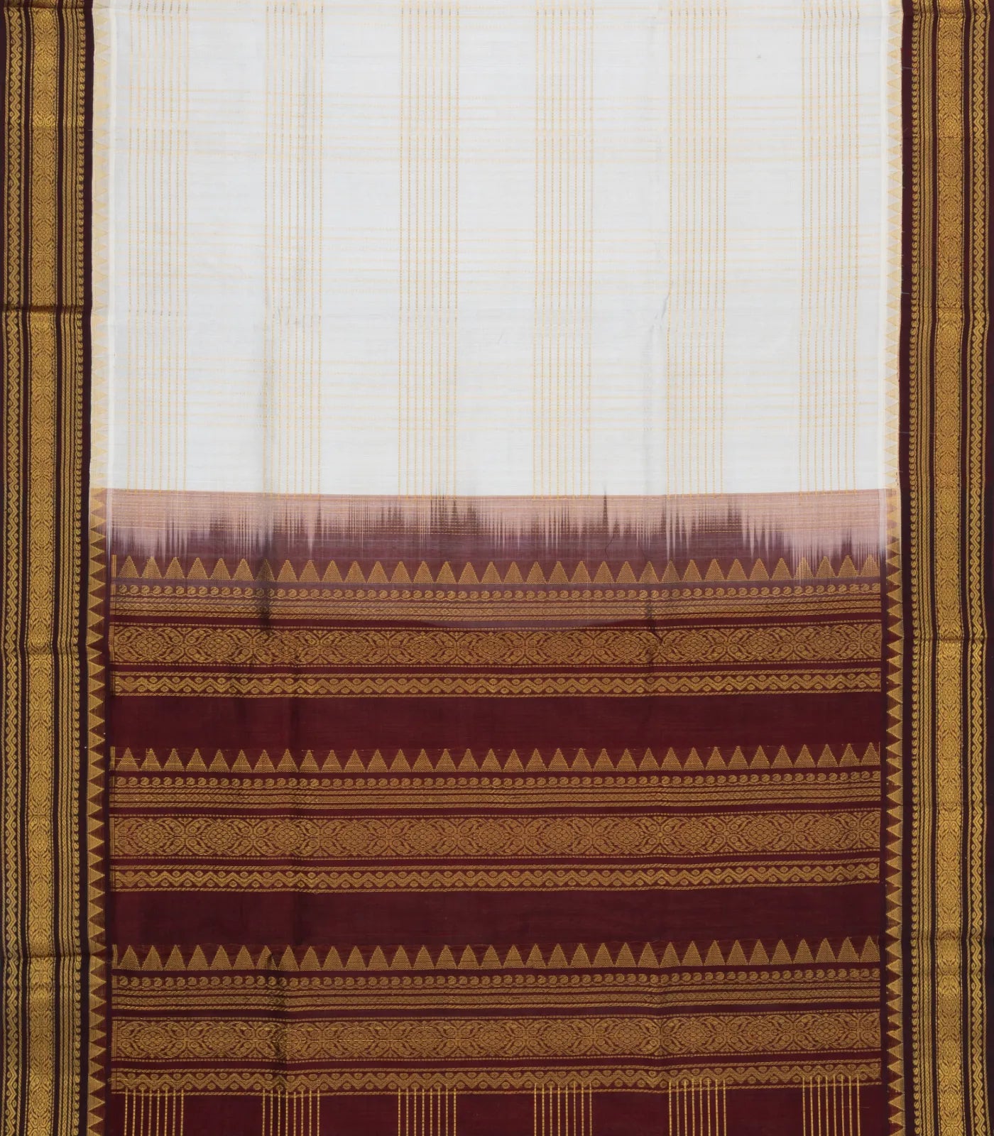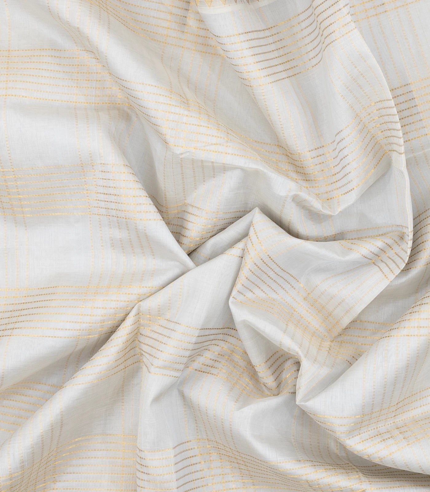 White Handloom Korvai Silk Cotton Saree With Checks & Contrast Border-SC3870