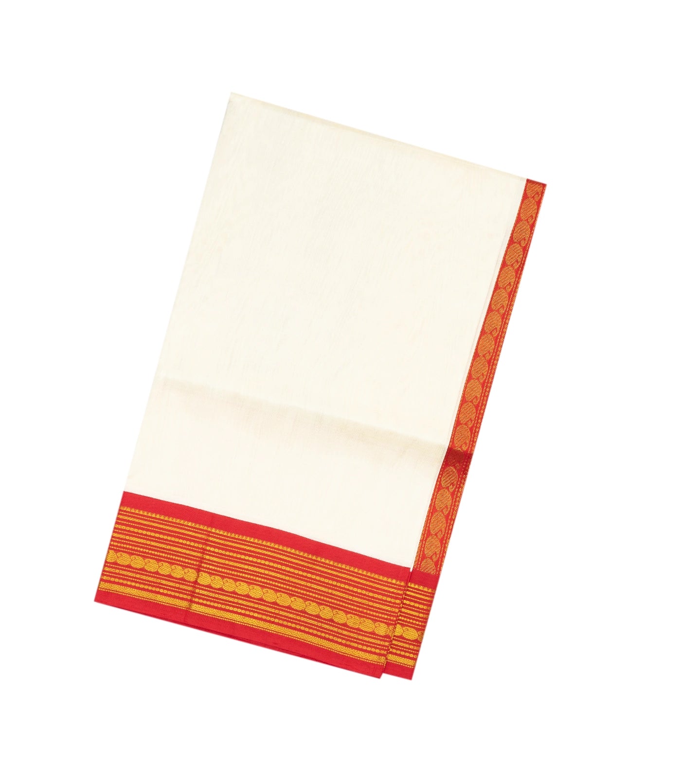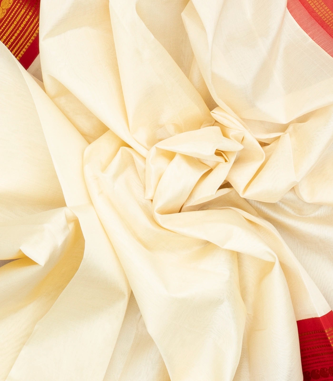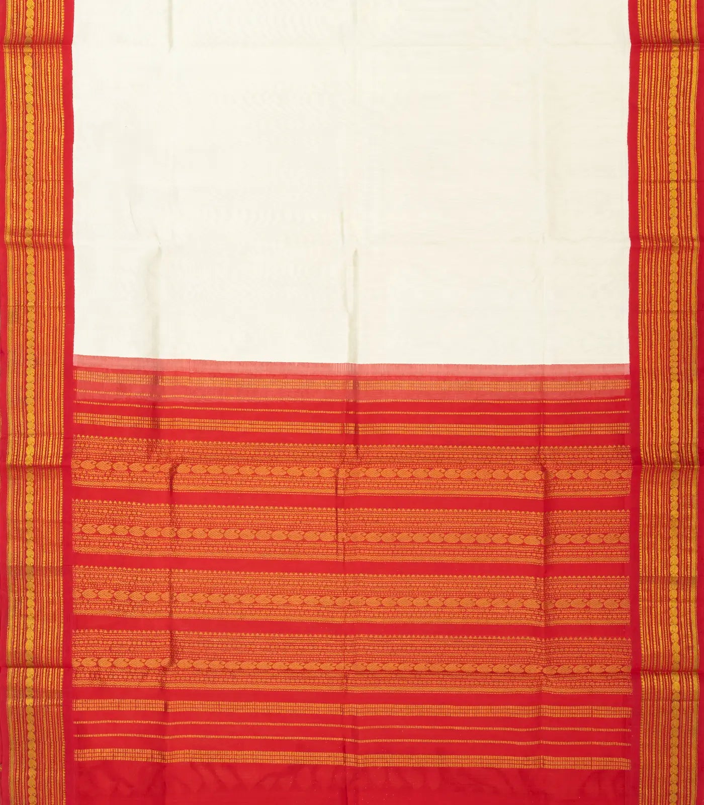 White Handloom Korvai Silk Cotton Saree With Contrast Red Border-SC3371