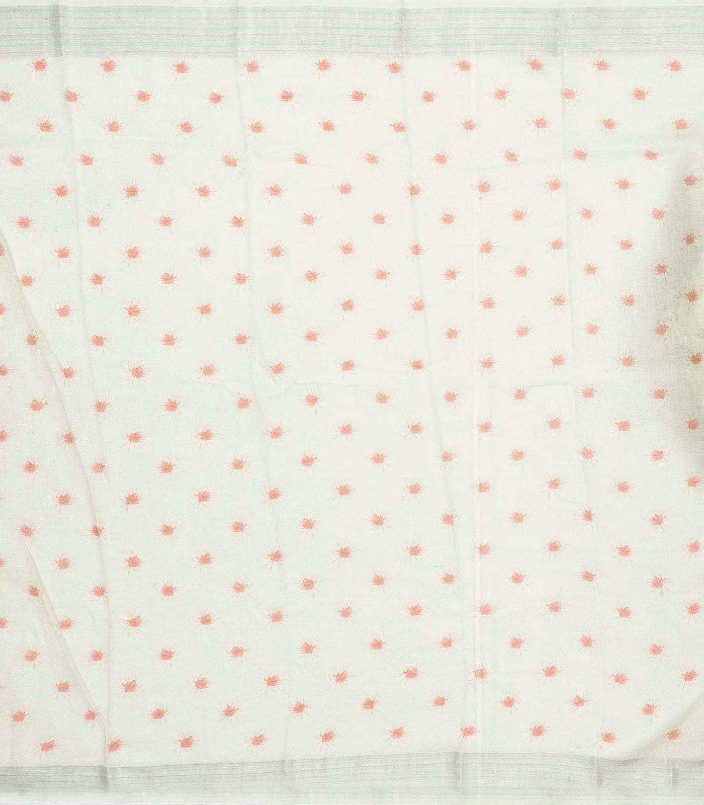 This handwoven linen saree is printed with bird motifs in white body along with border and pallu