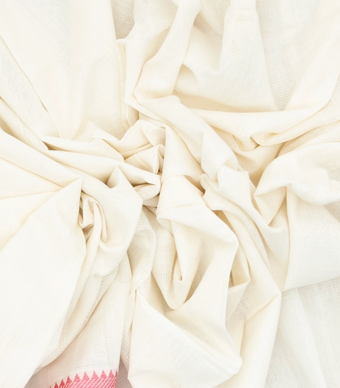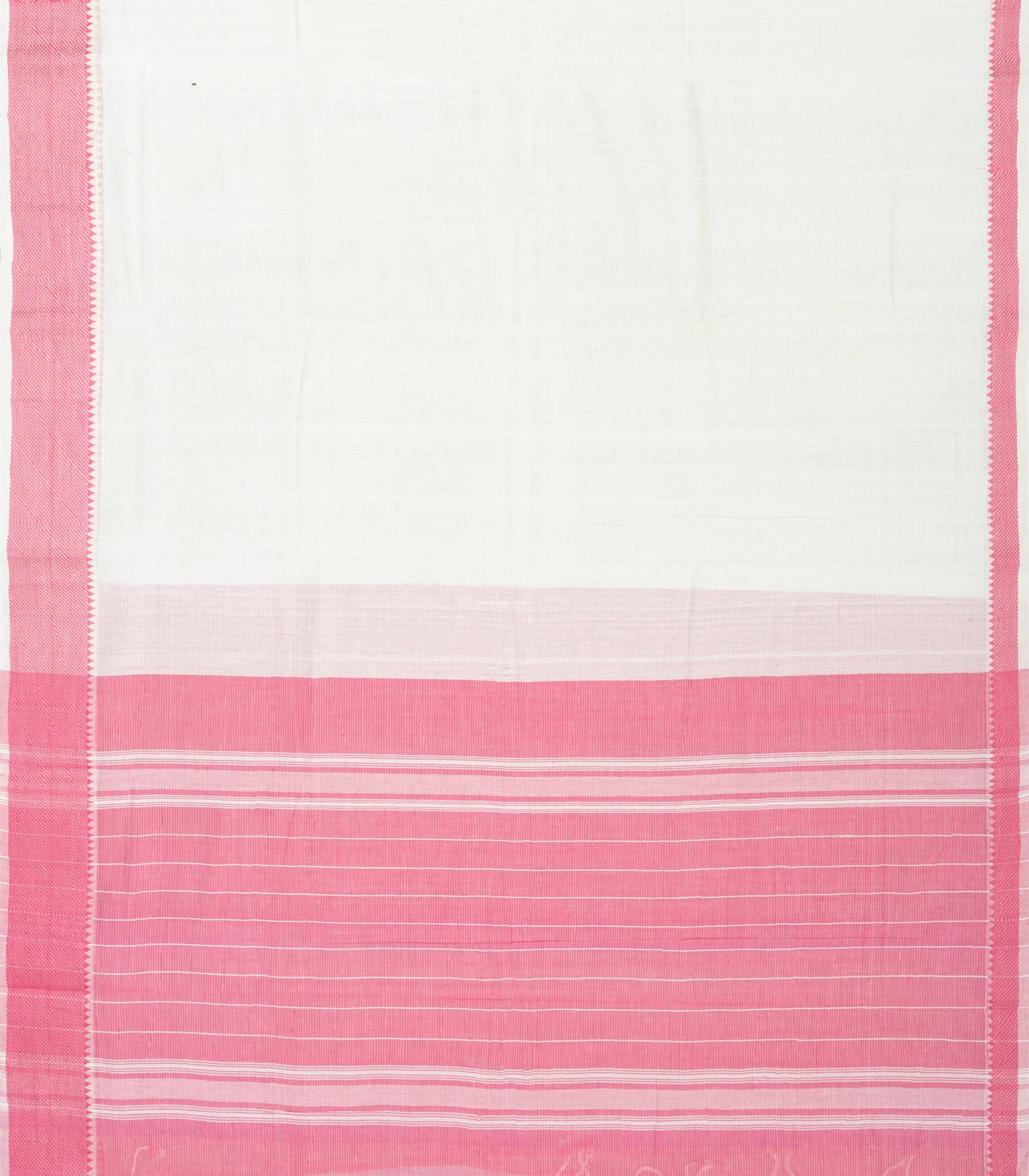 White Handloom Mangalagiri Cotton Saree With Pink Border-MA0723