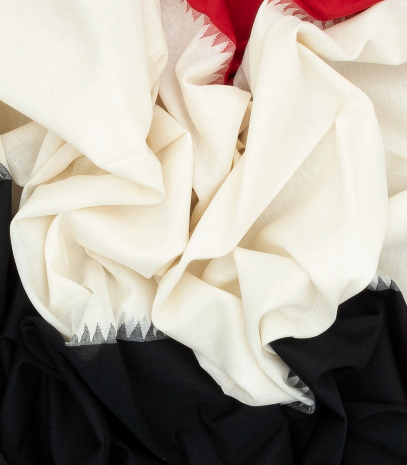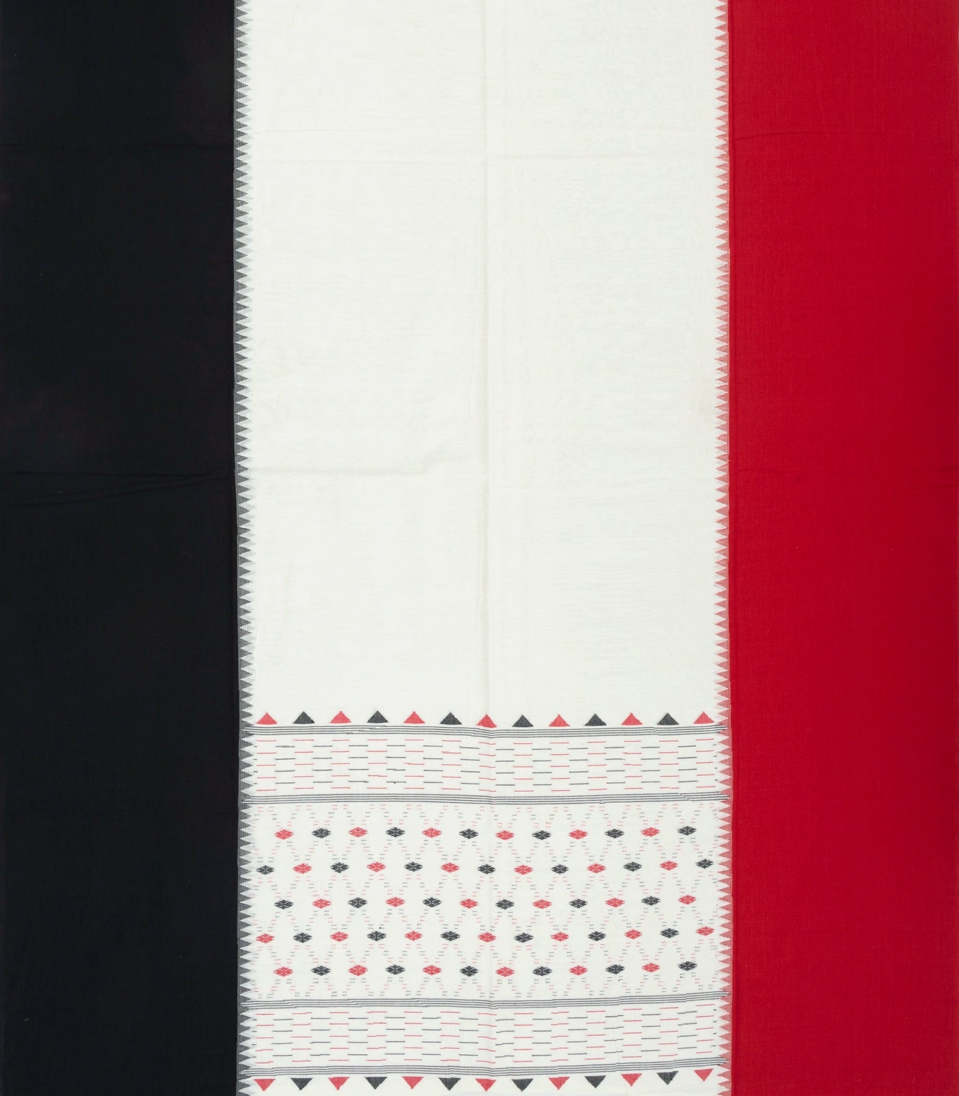 White Handloom Muppagam Bengal Cotton Saree With Ganga Jamuna Border-BG1261