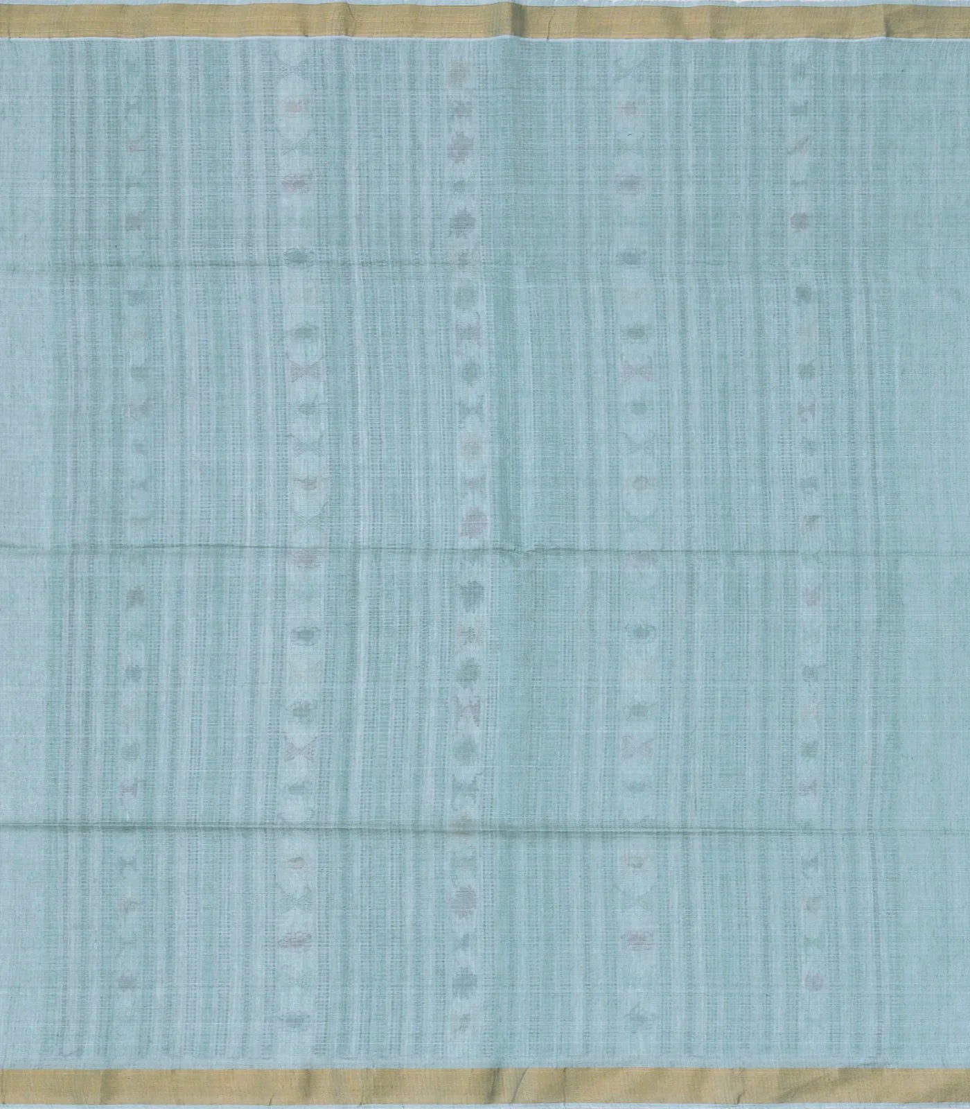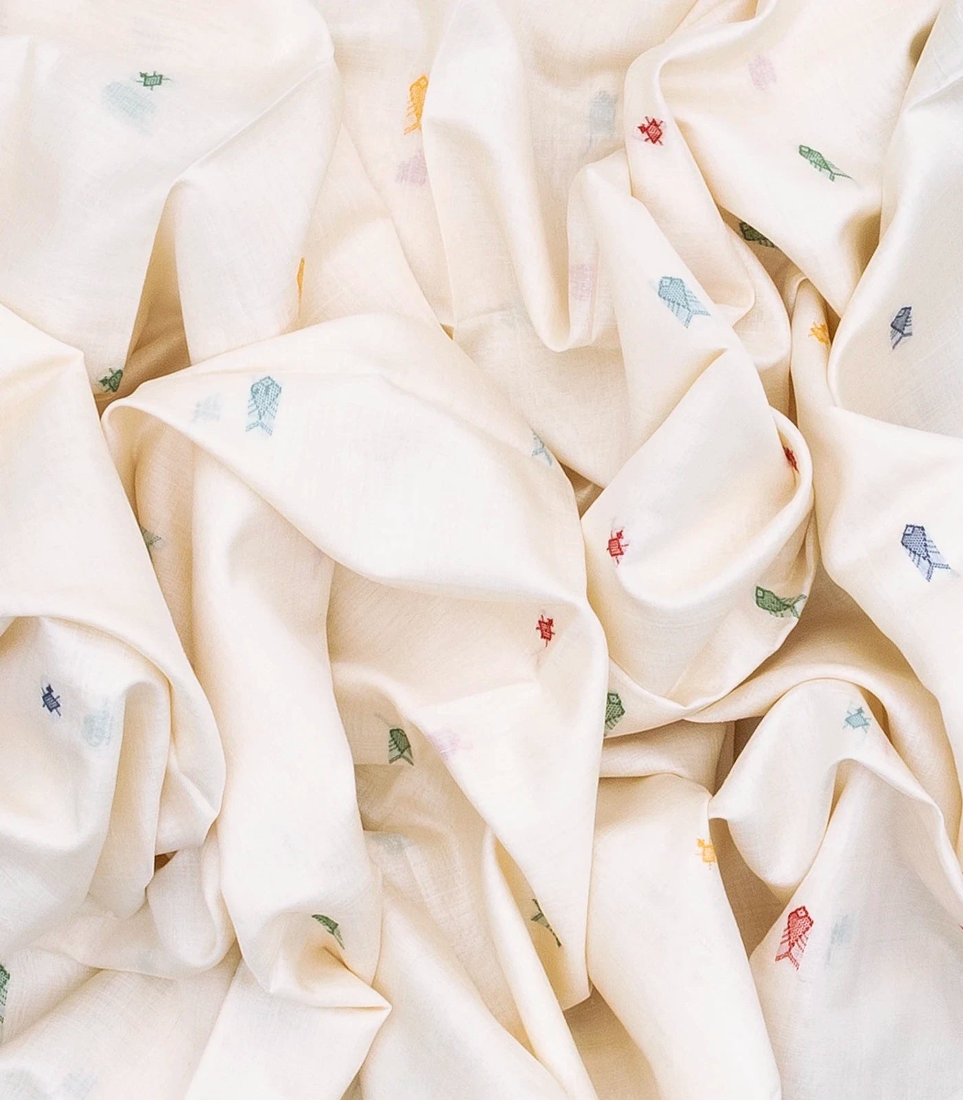 White Handloom Tussar Silk Saree With Meena Fish Buttas-TU2517