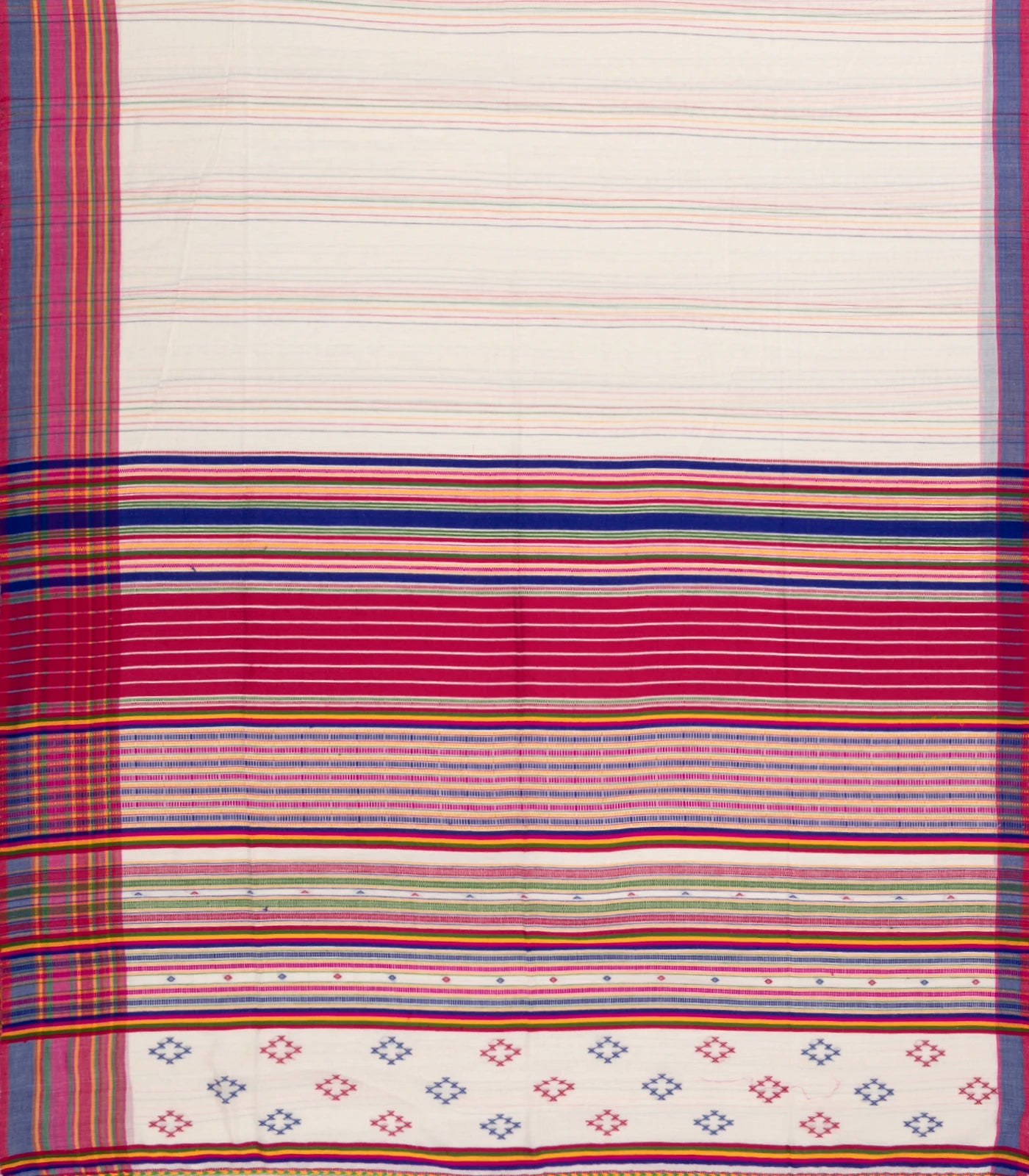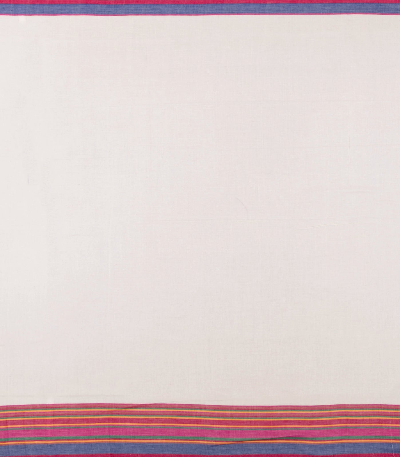 White Handwoven Bengal Cotton Saree With Multi Stripes-BG1523