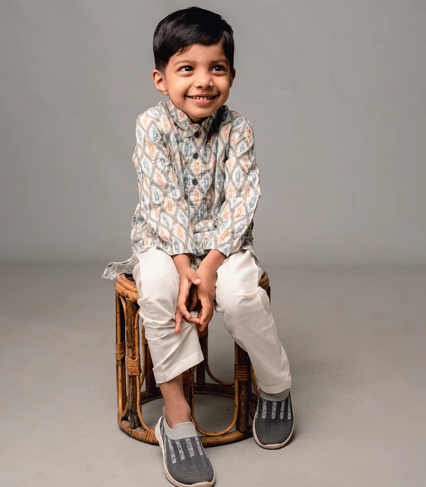 White Ikat printed kurta with sequin embellishments and matching pyjama set-White