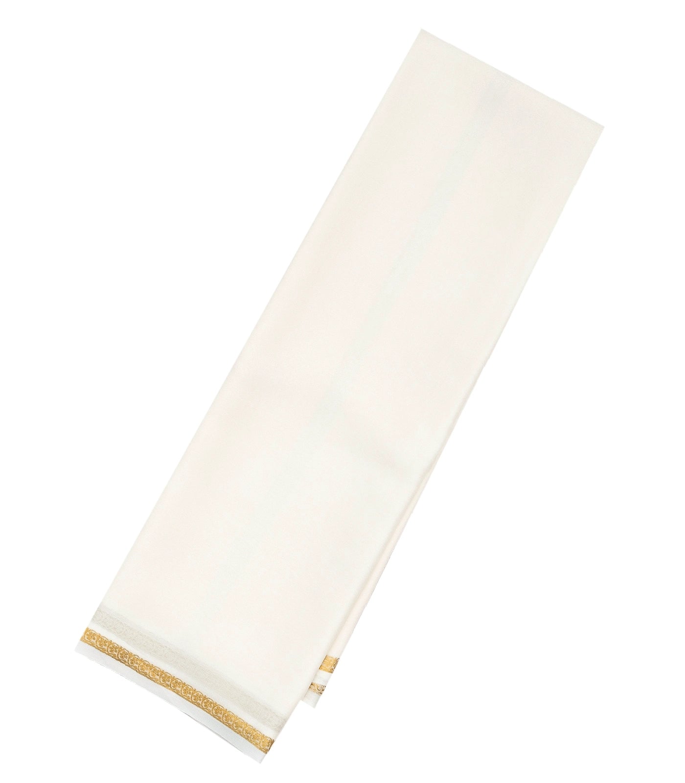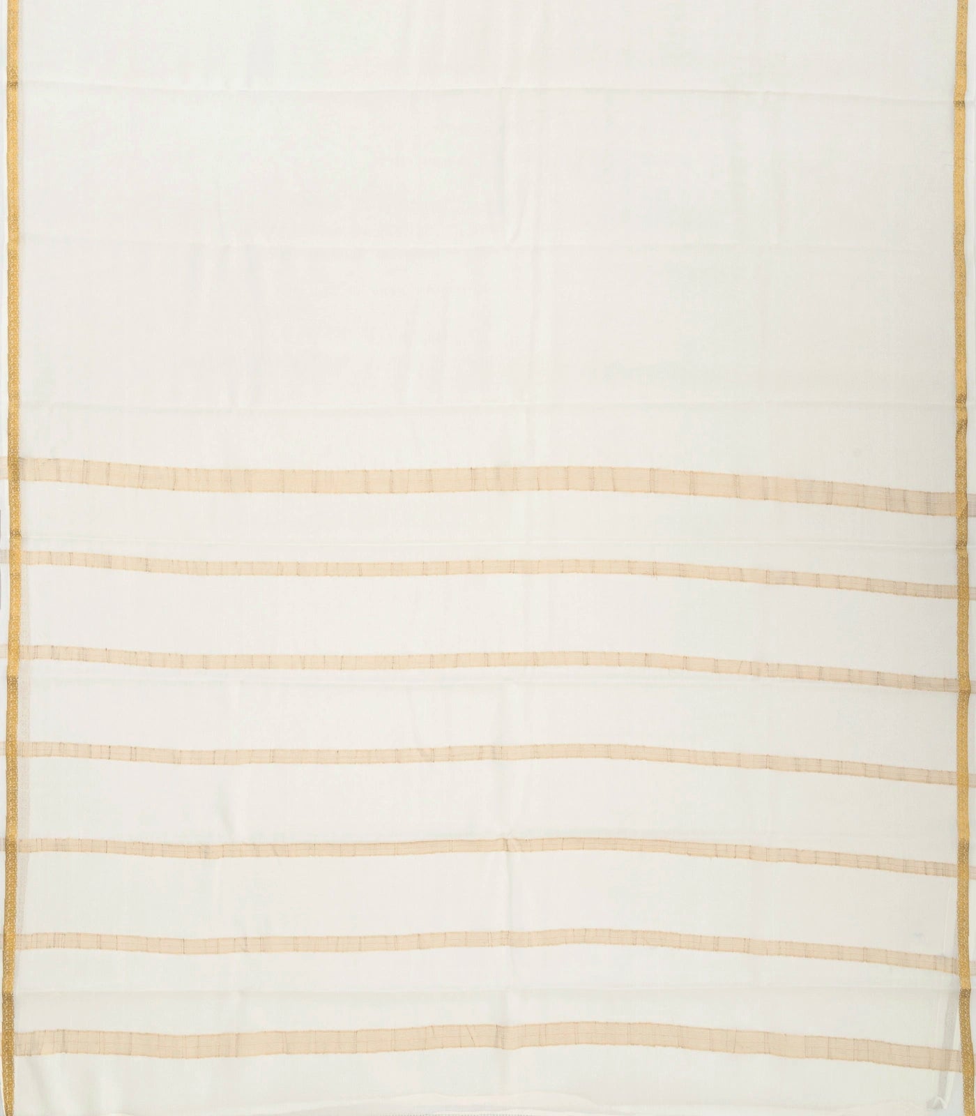White Mysore Silk Saree With Floral Zari Border-MS3022