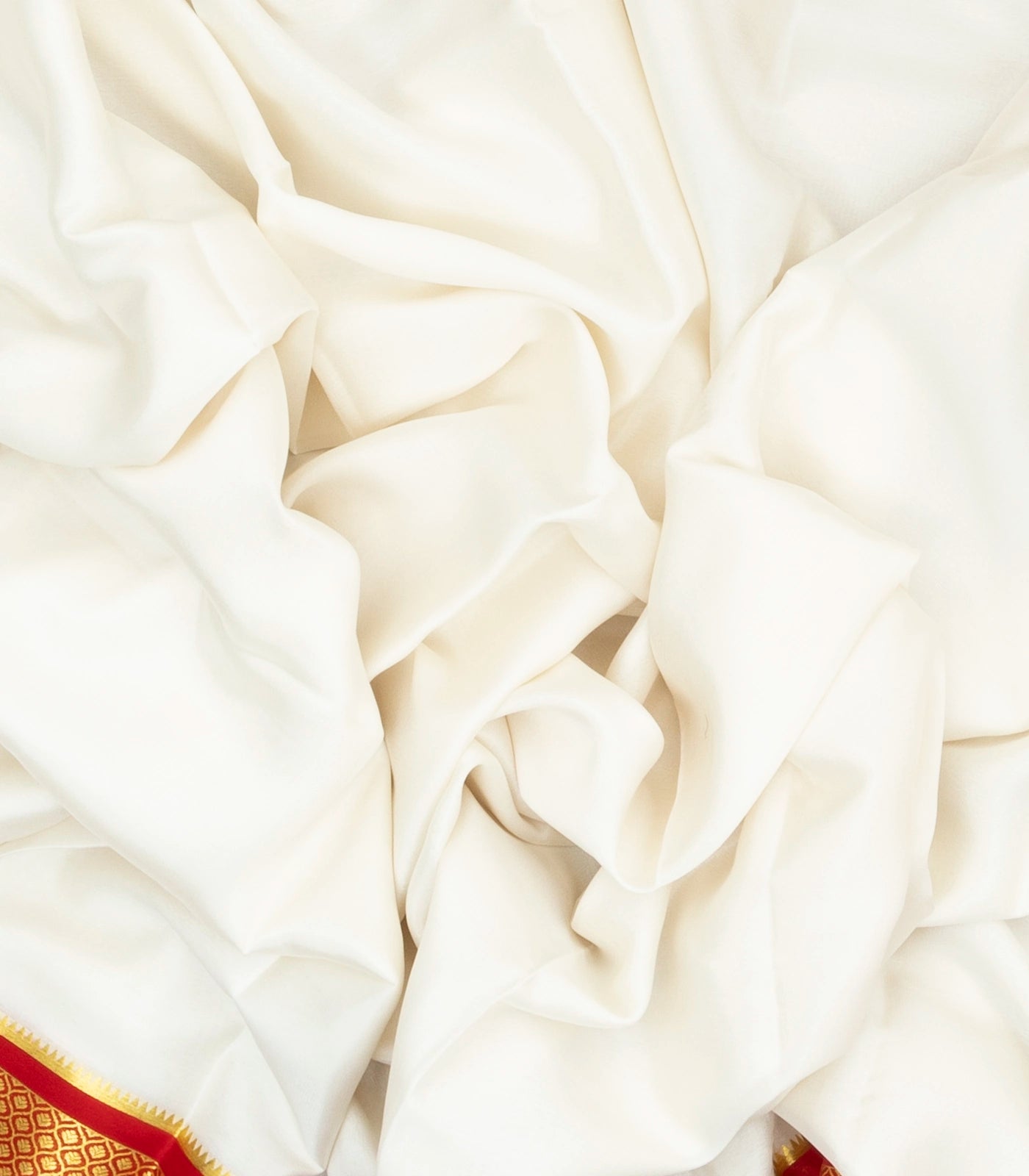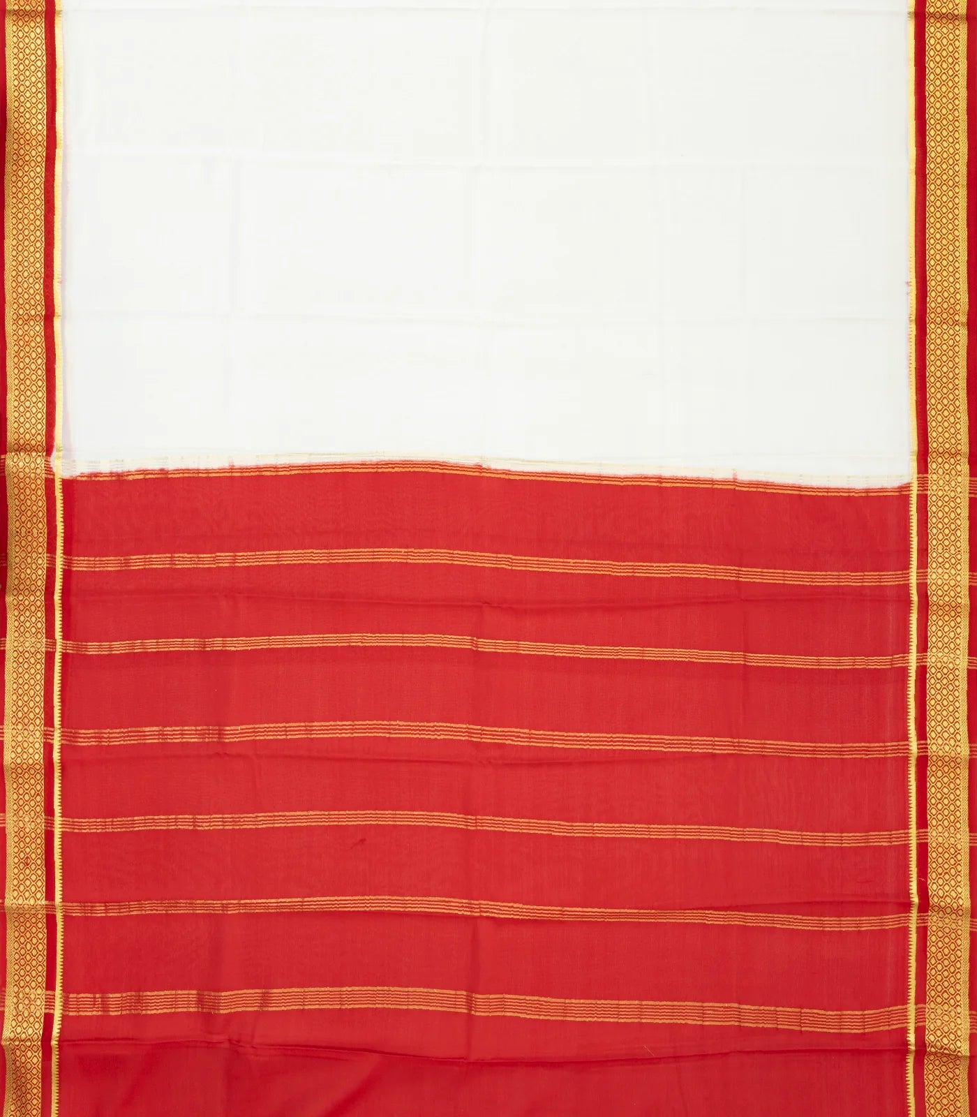 White Woven Mysore Silk Saree With Contrast Red Border-MS3033