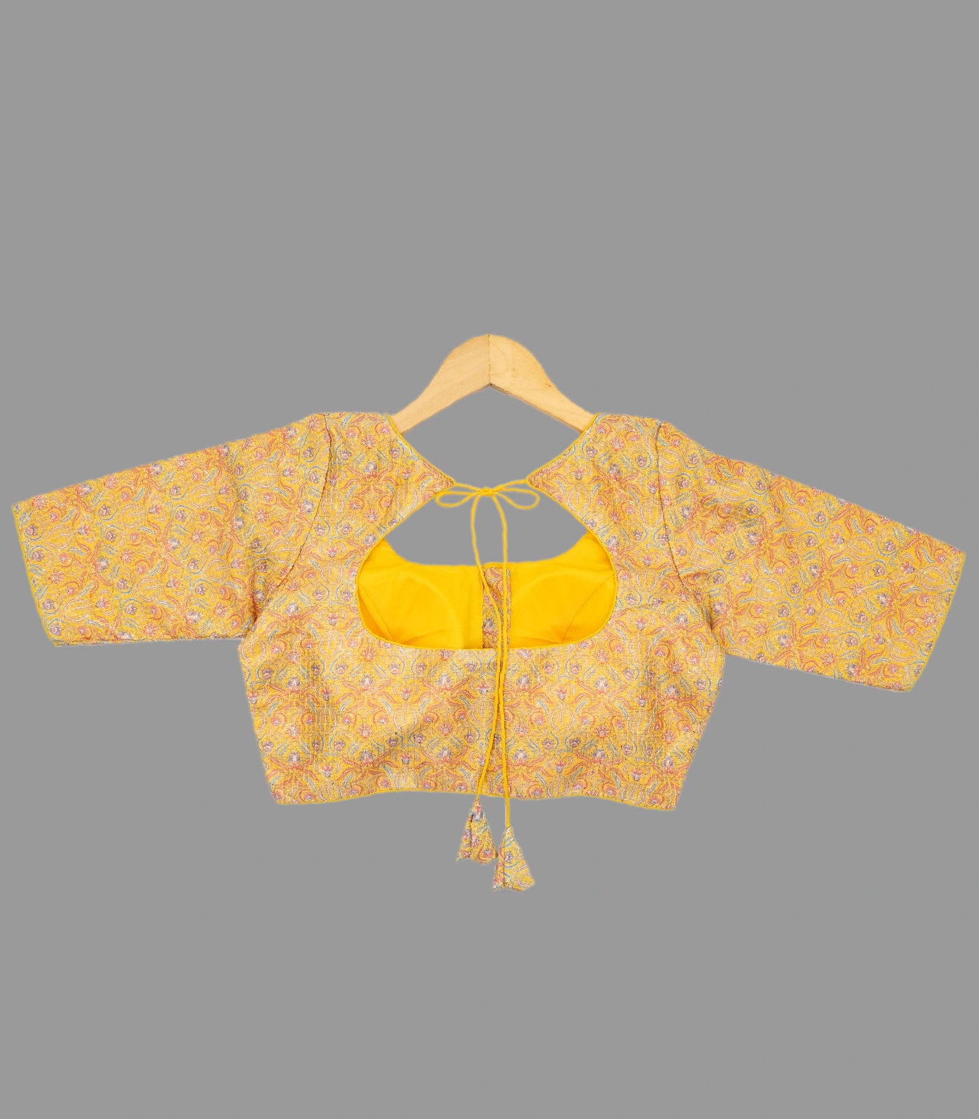 Ready made blouse Waist: 35 cms, Chest: 43 cms, Sleeve Length: 28 cms, Sleeve Round: 26 cms