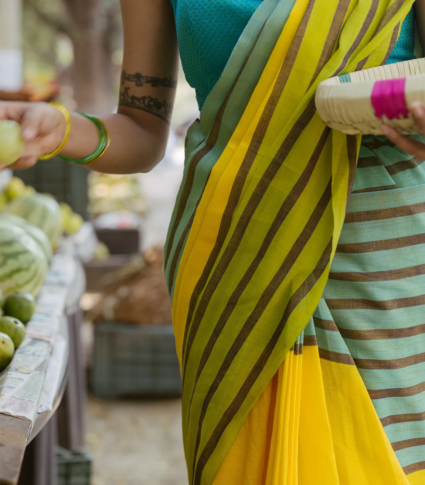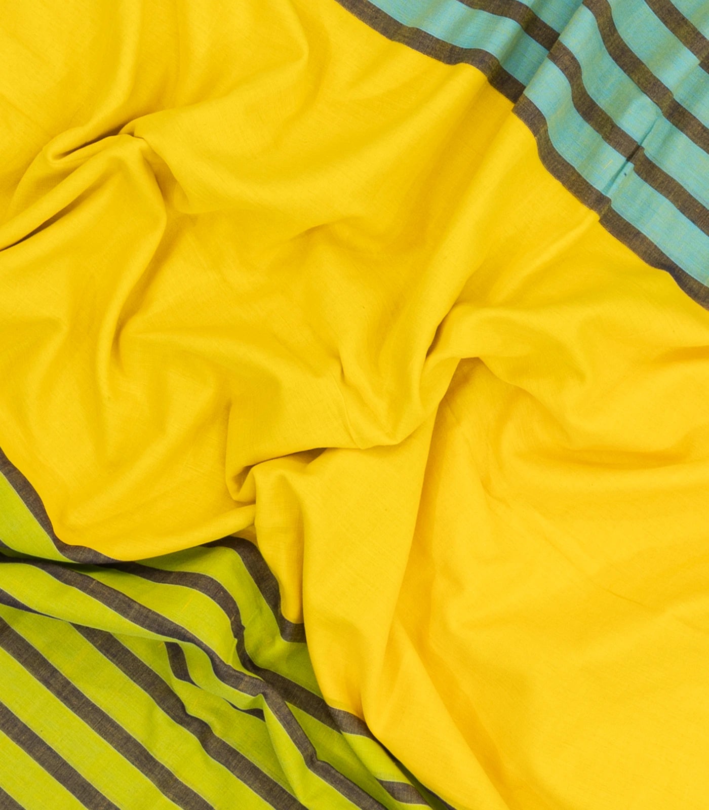 Yellow Handloom Bengal Cotton Saree With Stripes Border-BG1868