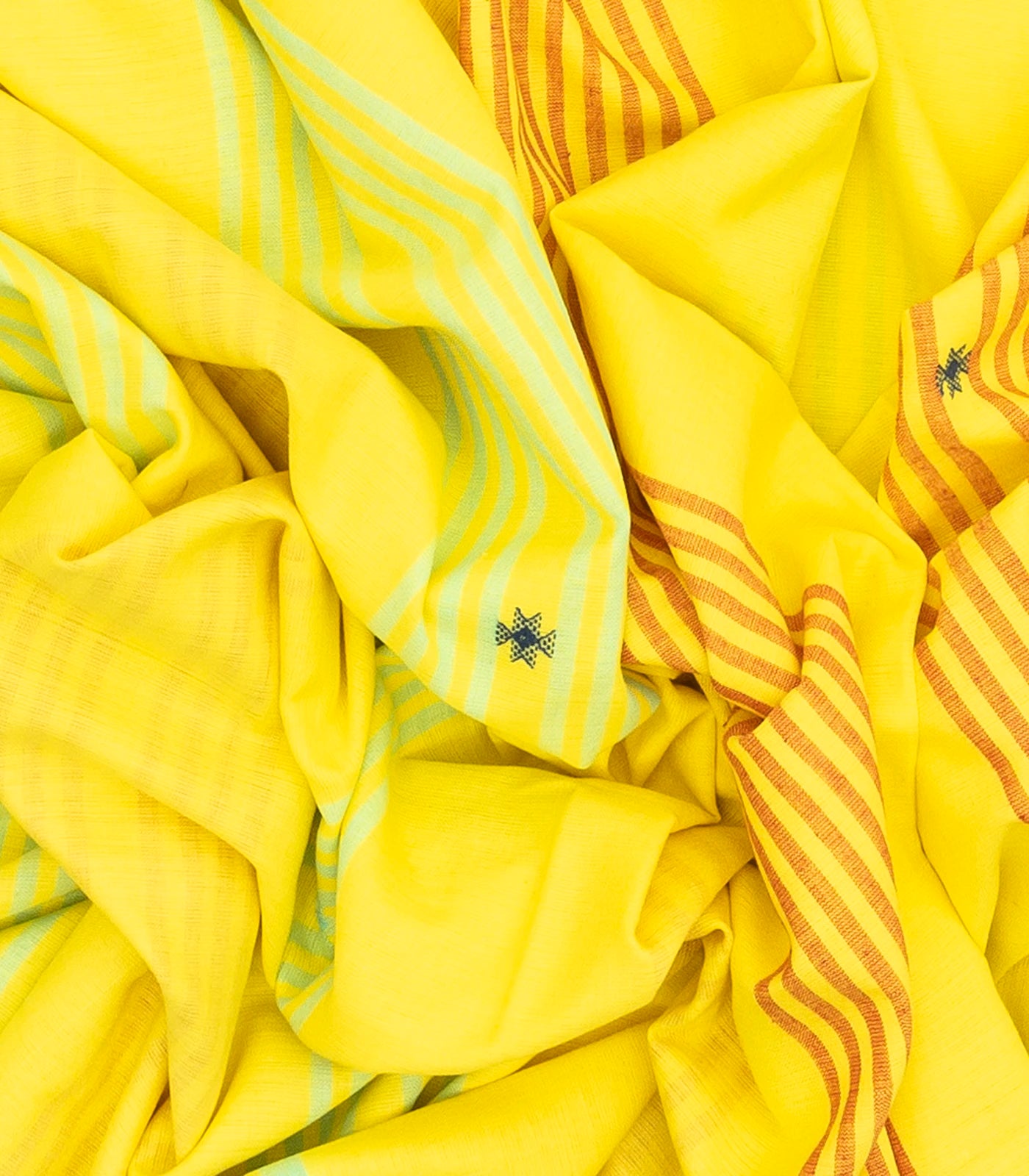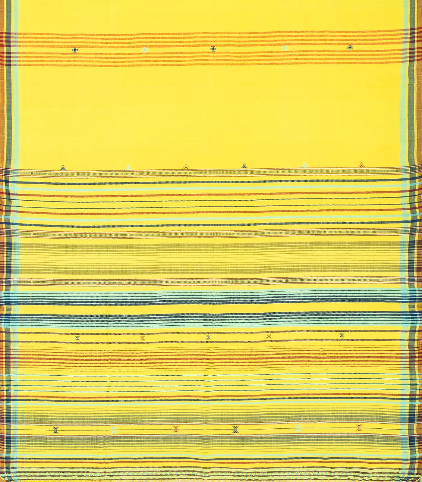 Yellow Handloom Bhujodi Cotton Saree With Buttas