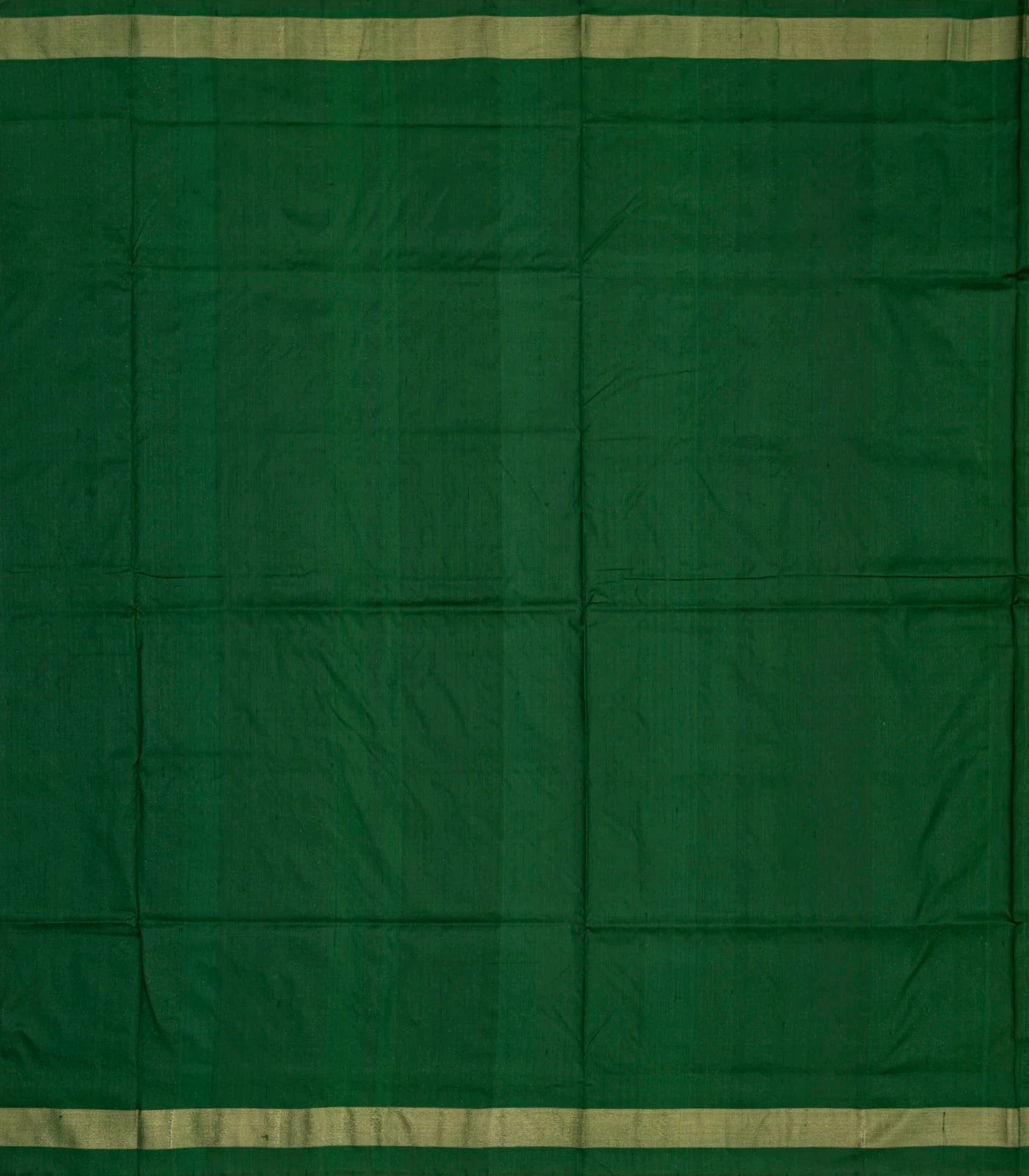 This handwoven single ikat silk saree is filled with triangle motifs in yellow body along with contrast green border and pallu