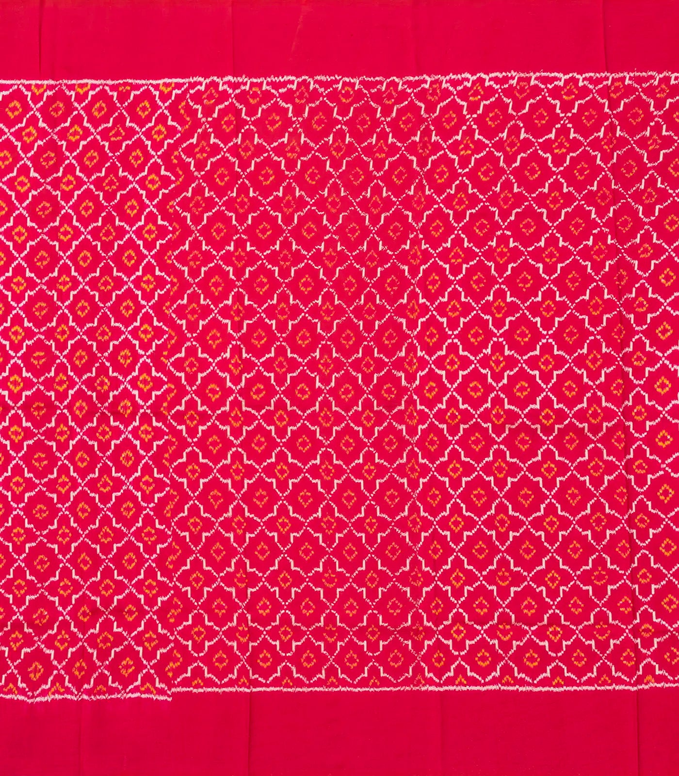 This handwoven kanchipuram korvai silk saree is printed with floral motifs in yellow body along with contrast red border and pallu