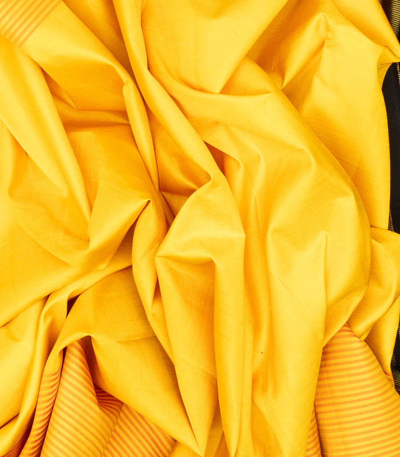 Yellow Handloom Kanchipuram Korvai Silk Saree With Black Border-KA11012