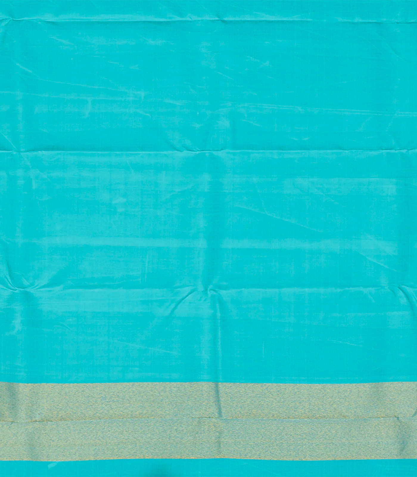 This handwoven kanchipuram korvai silk saree is filled with meena zari checks in yellow body along with contrast turquoise border and pallu