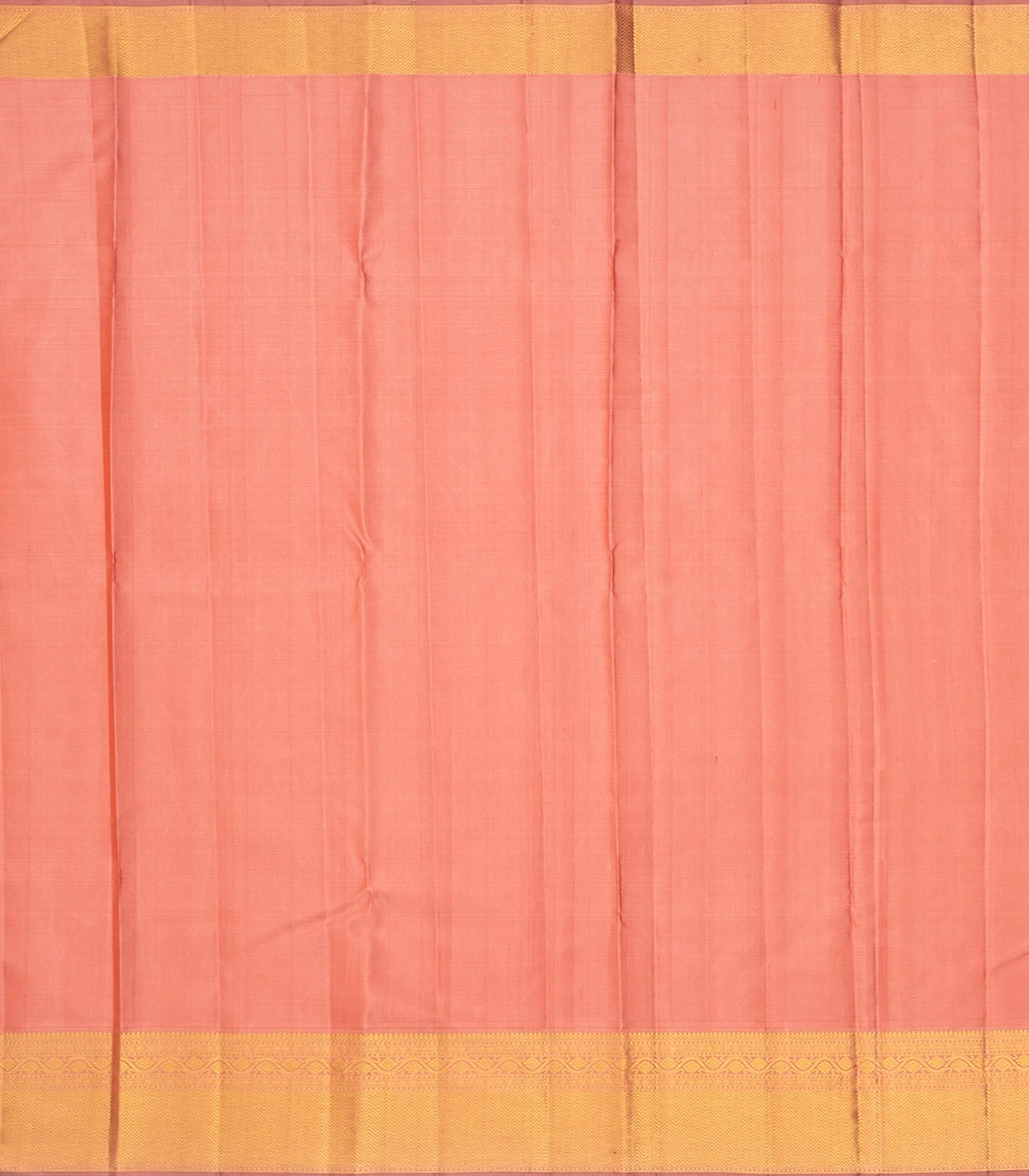 This handwoven kanchipuram korvai silk saree is filled with meena floral motifs in yellow body along with contrast dusty pink border and pallu