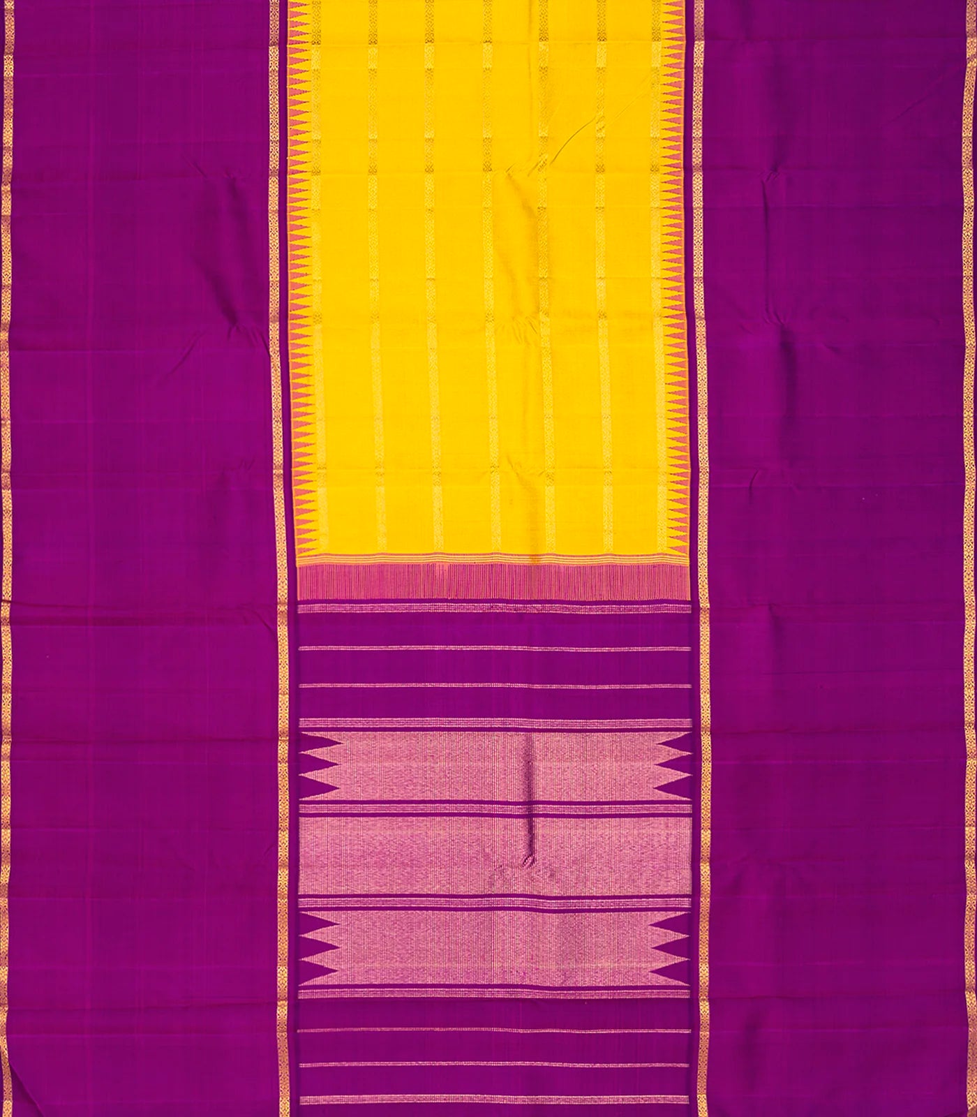 Yellow Handloom Kanchipuram Muppagam Korvai Silk Saree -Yellow