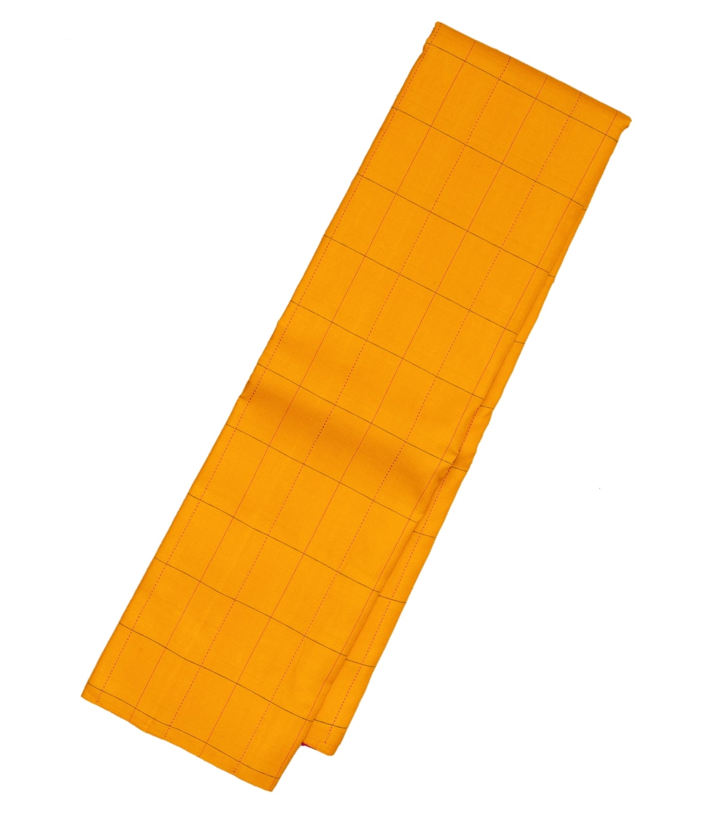 Yellow Handloom Kanchipuram Silk Saree With Checks & Contrast Pallu-KA12305