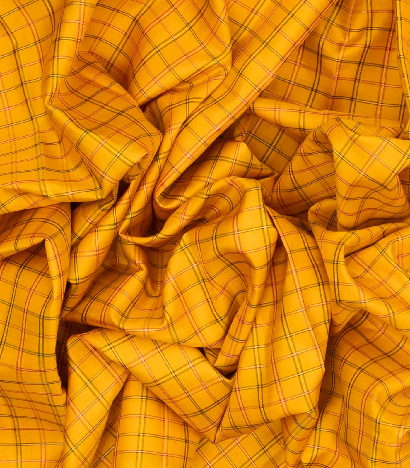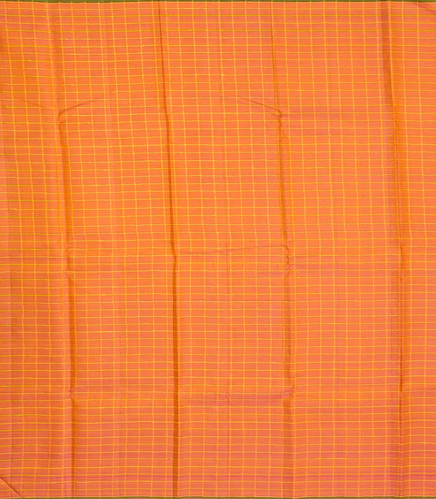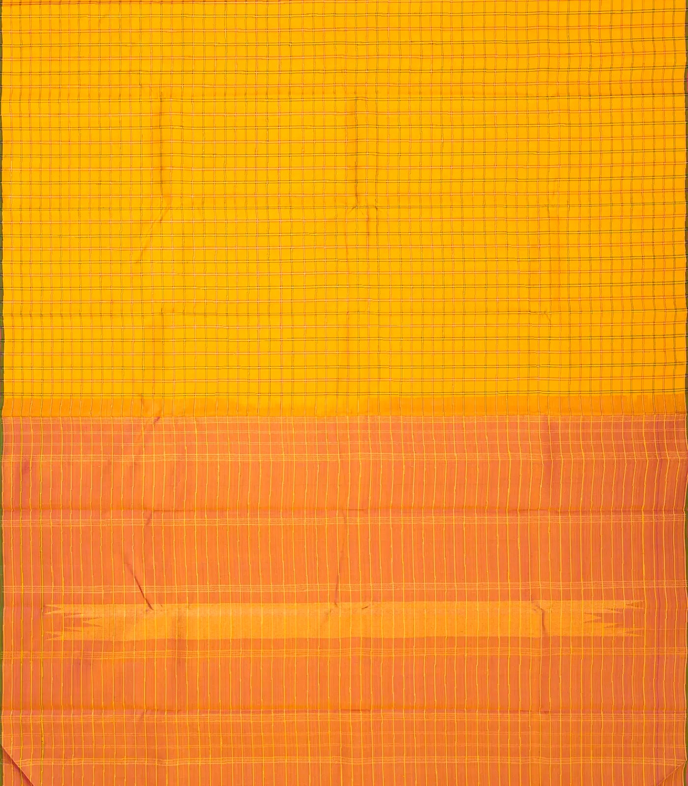 Yellow Handloom Kanchipuram Silk Saree With Checks-KA12244