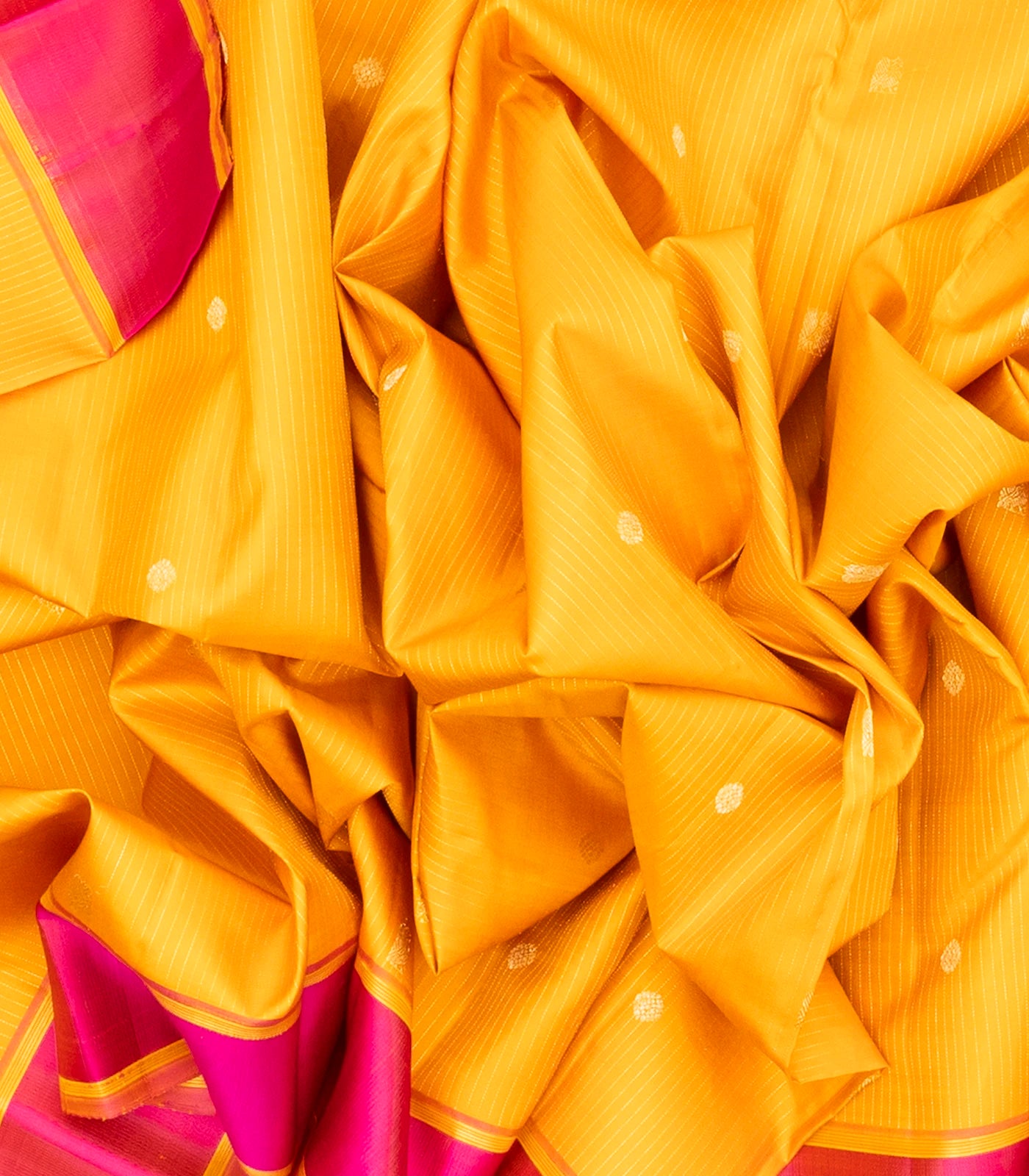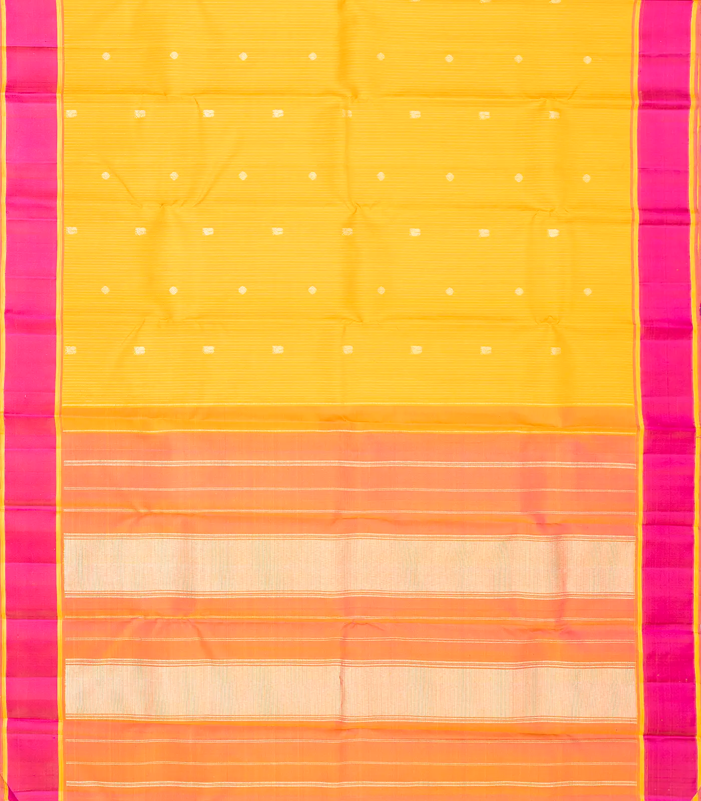 Yellow Handloom Kanchipuram Silk Saree With Stripes & Buttas