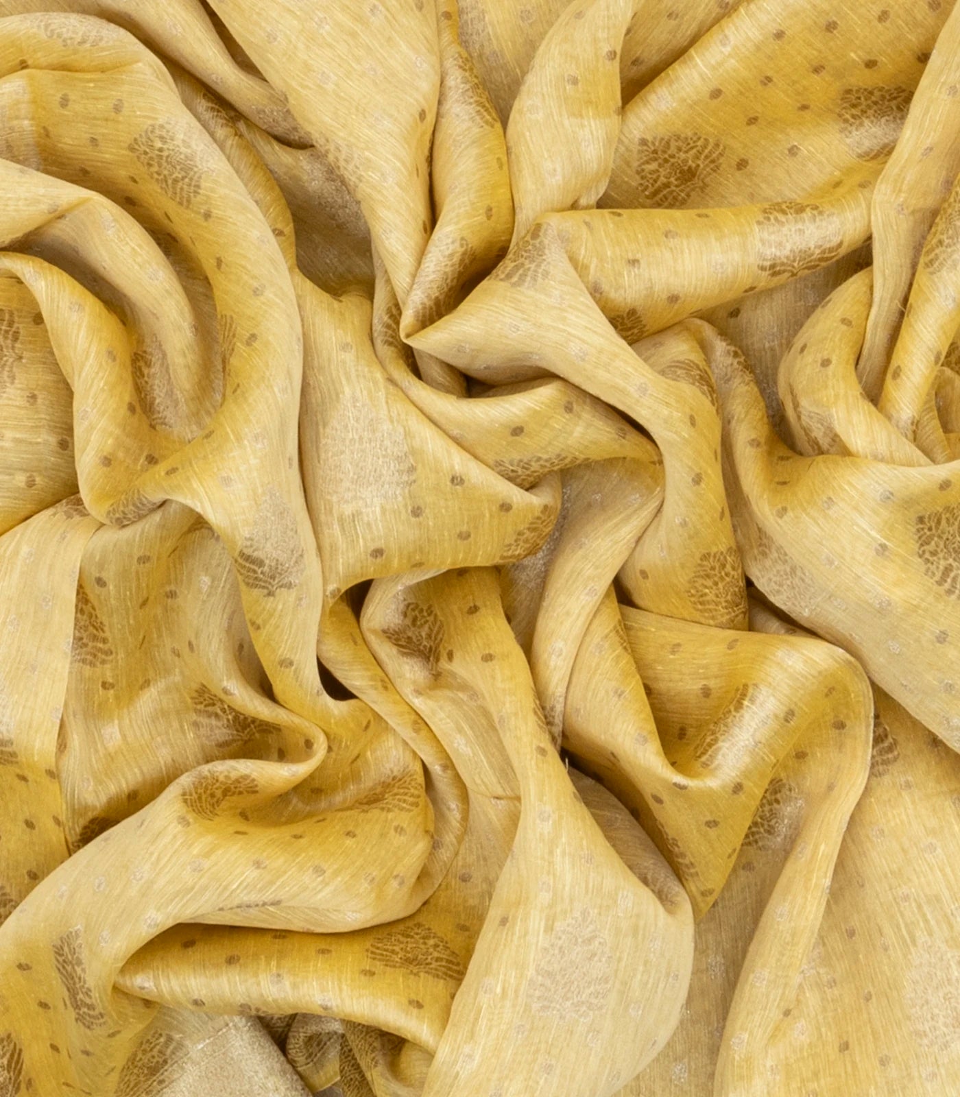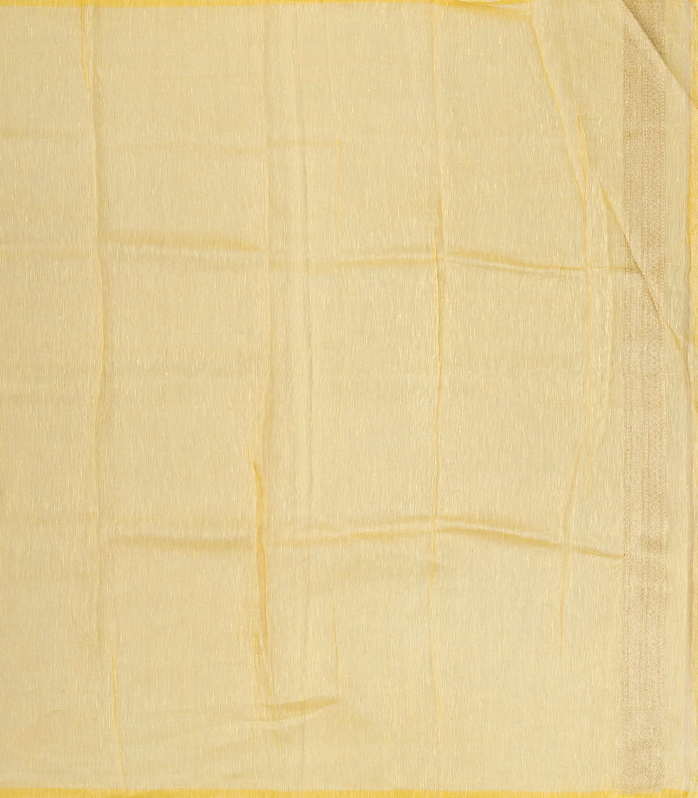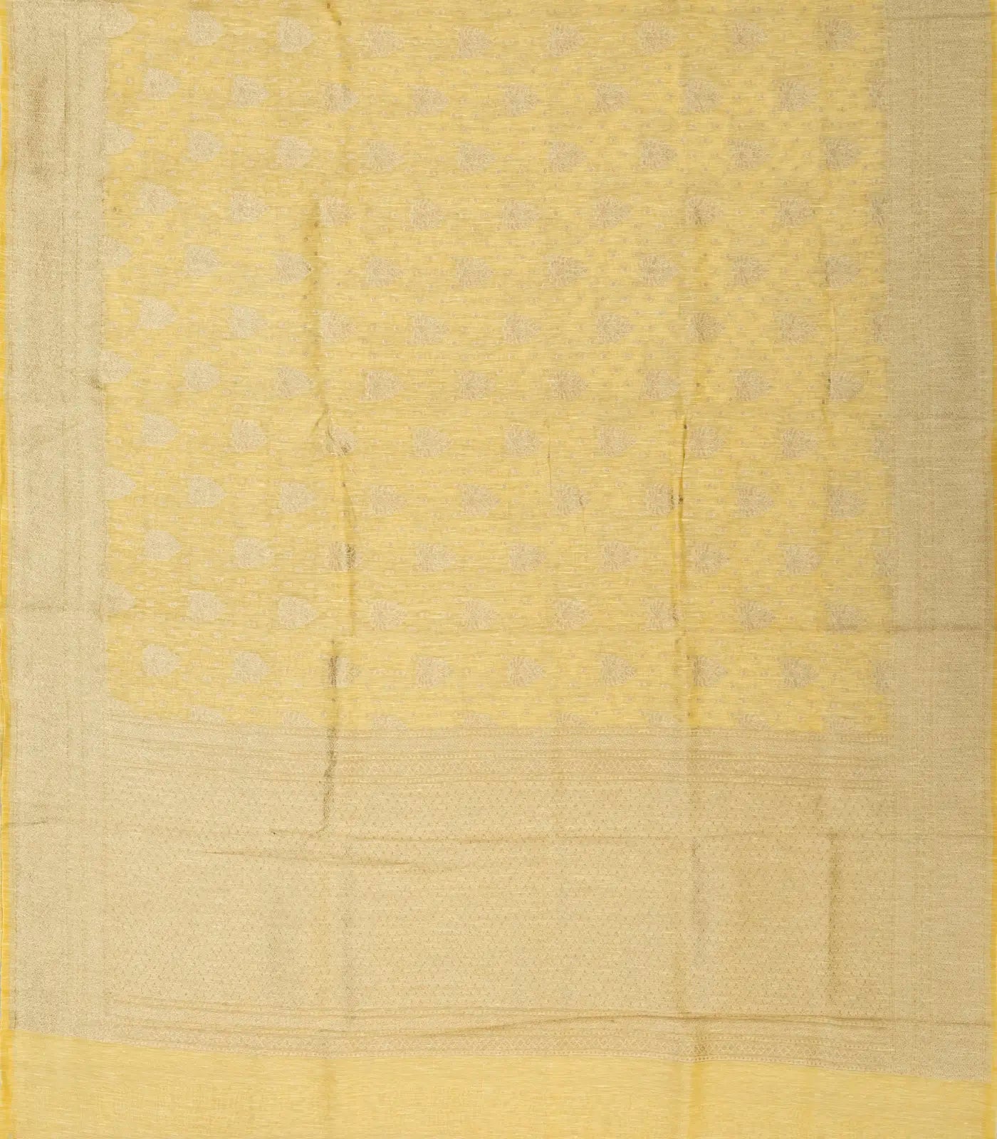 Yellow Handloom Linen Saree With Floral Zari Motifs-LI0603