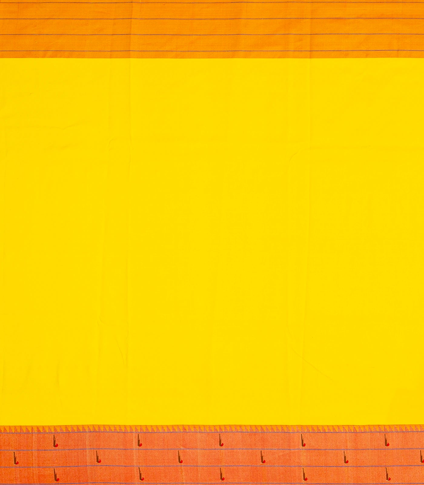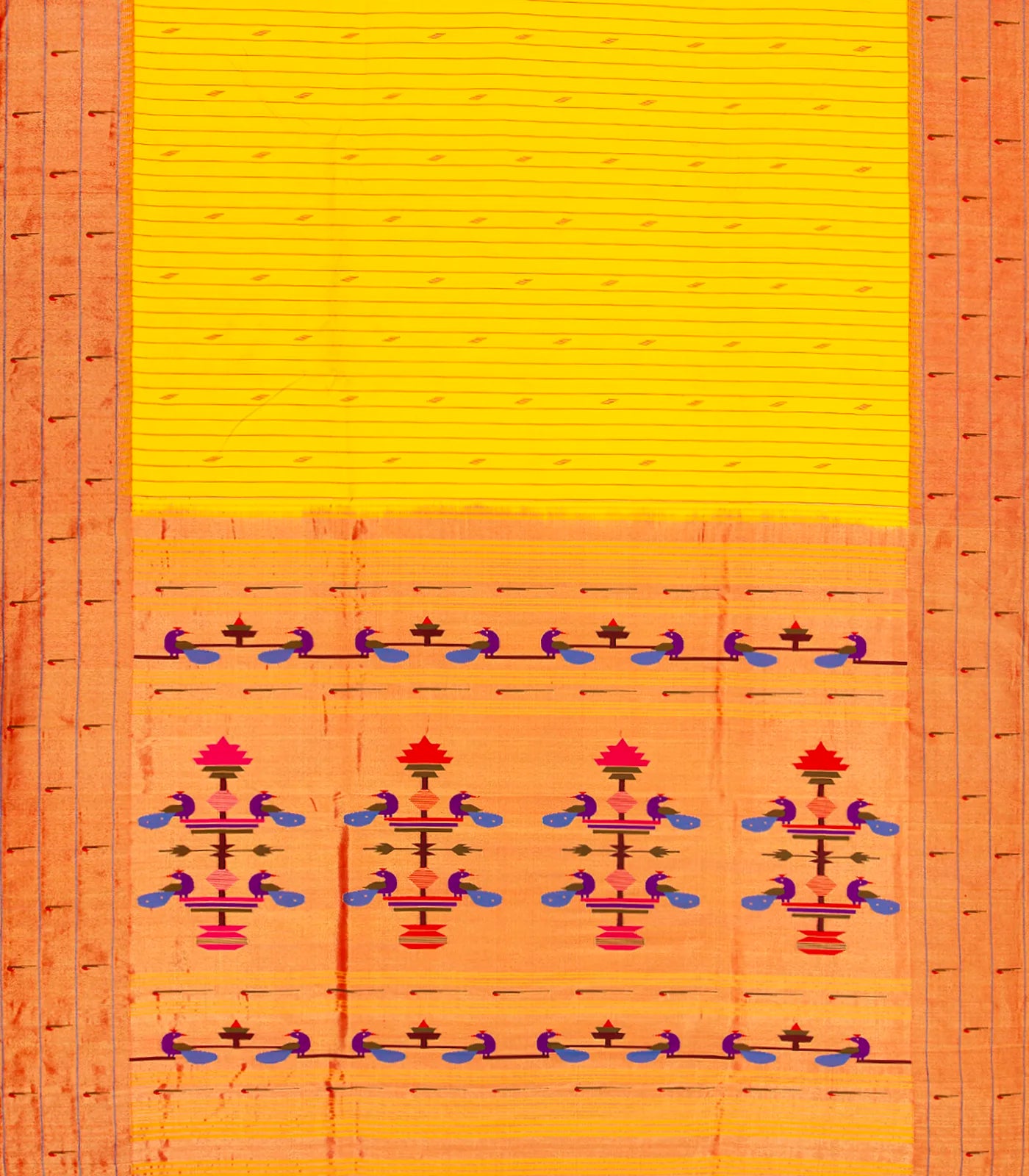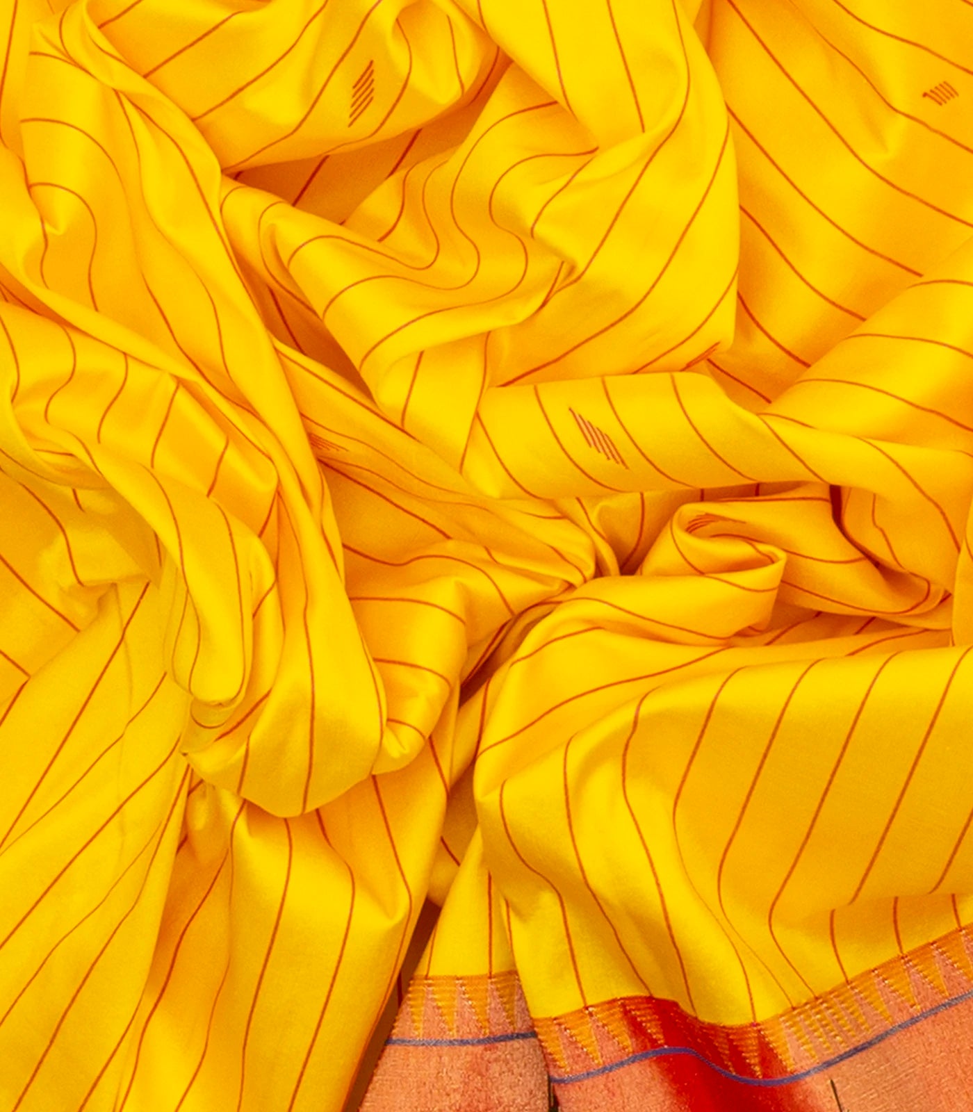 Yellow Handloom Paithani Silk Saree With Stripes & Buttas-Yellow