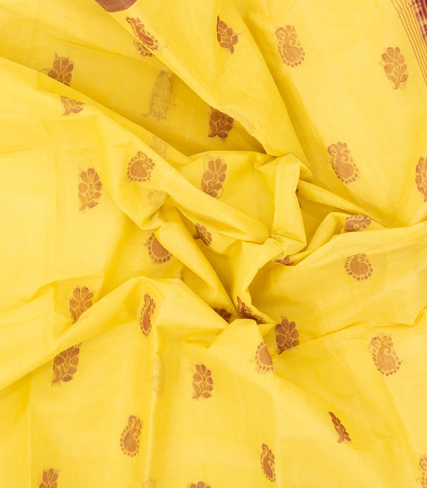 Yellow Handloom Rasipuram Cotton Saree With Floral Buttas-RA2419
