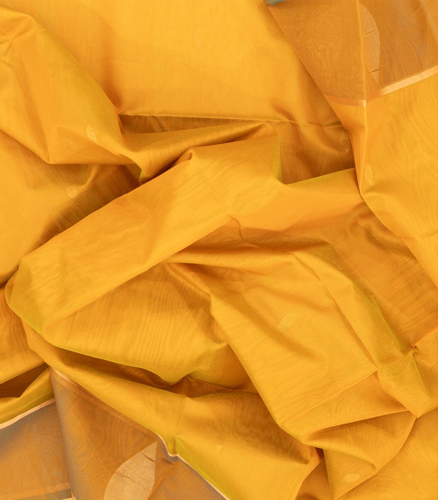 Yellow Handloom Silk Cotton Saree With Floral Buttas-SC3602