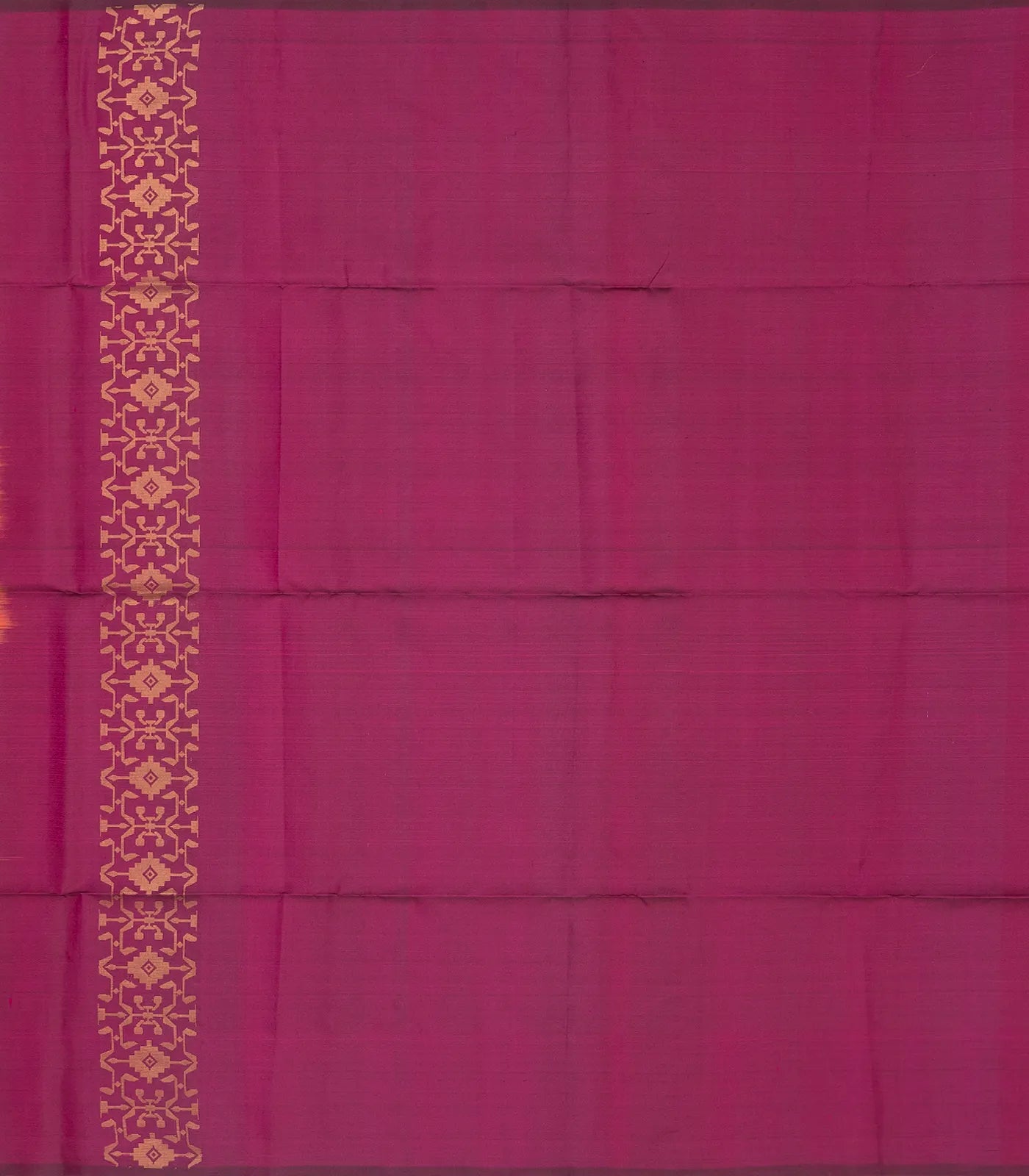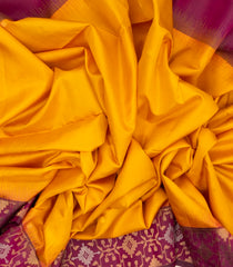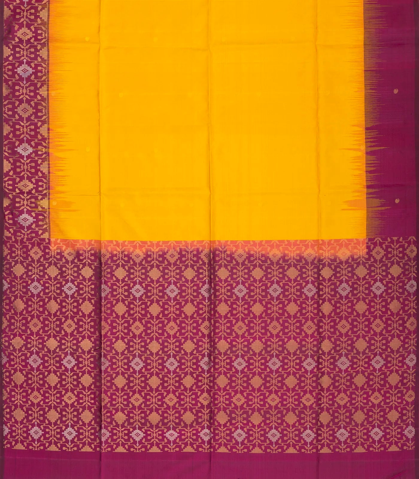 This handwoven soft silk saree is filled with plain yellow body along with contrast floral motifs in border and pallu