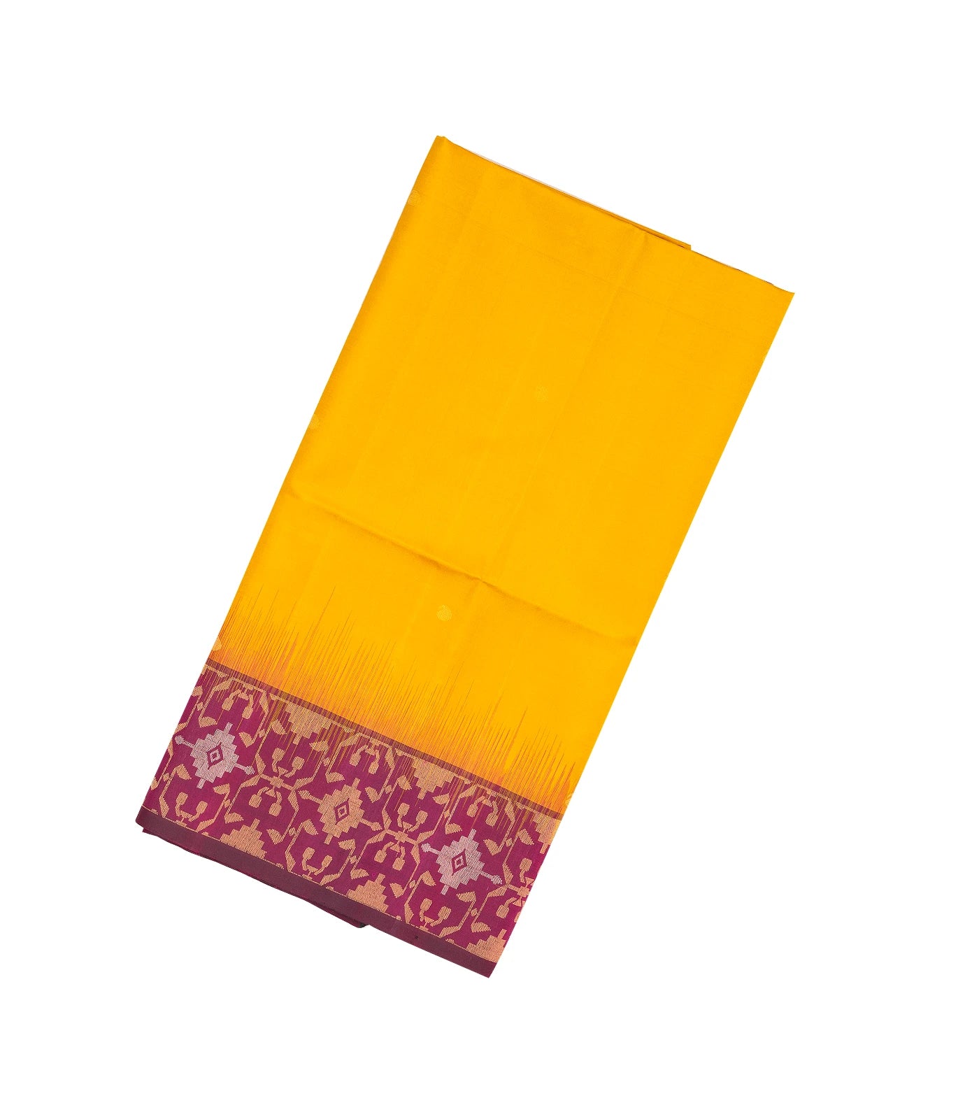 Yellow Handloom Soft Silk Saree With Contrast Floral Border-SO3993