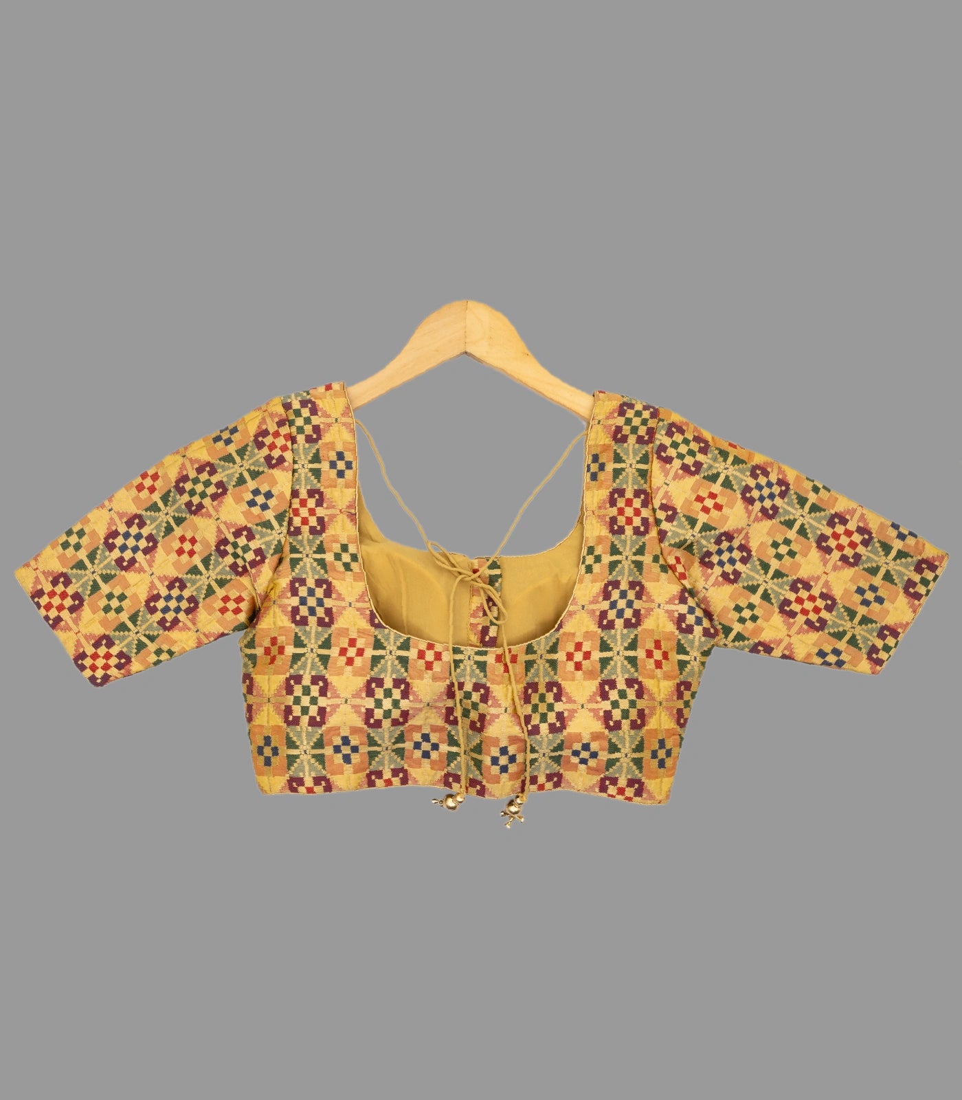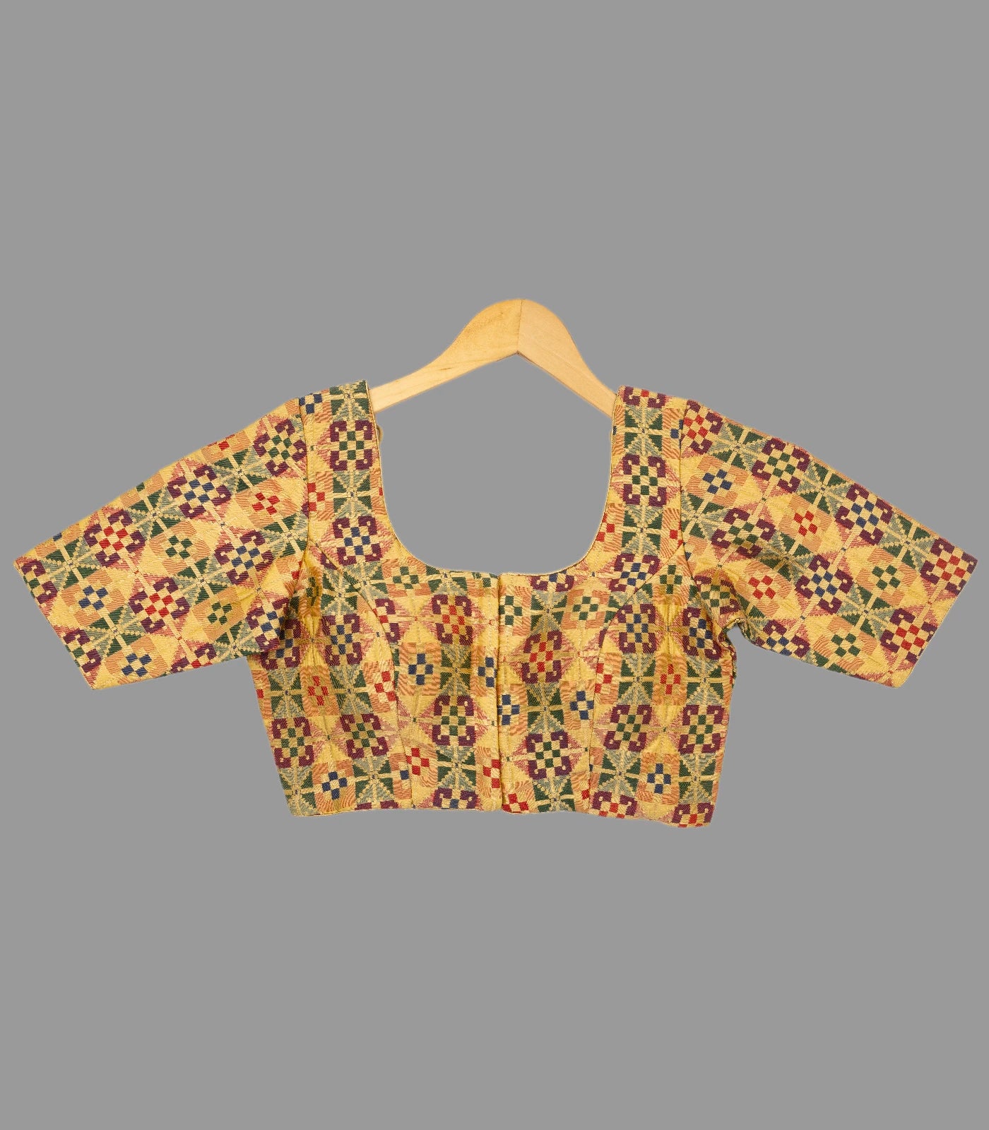 Ready made blouse Waist: 33 cms, Chest: 39 cms, Sleeve Length: 26 cms, Sleeve Round: 24 cms