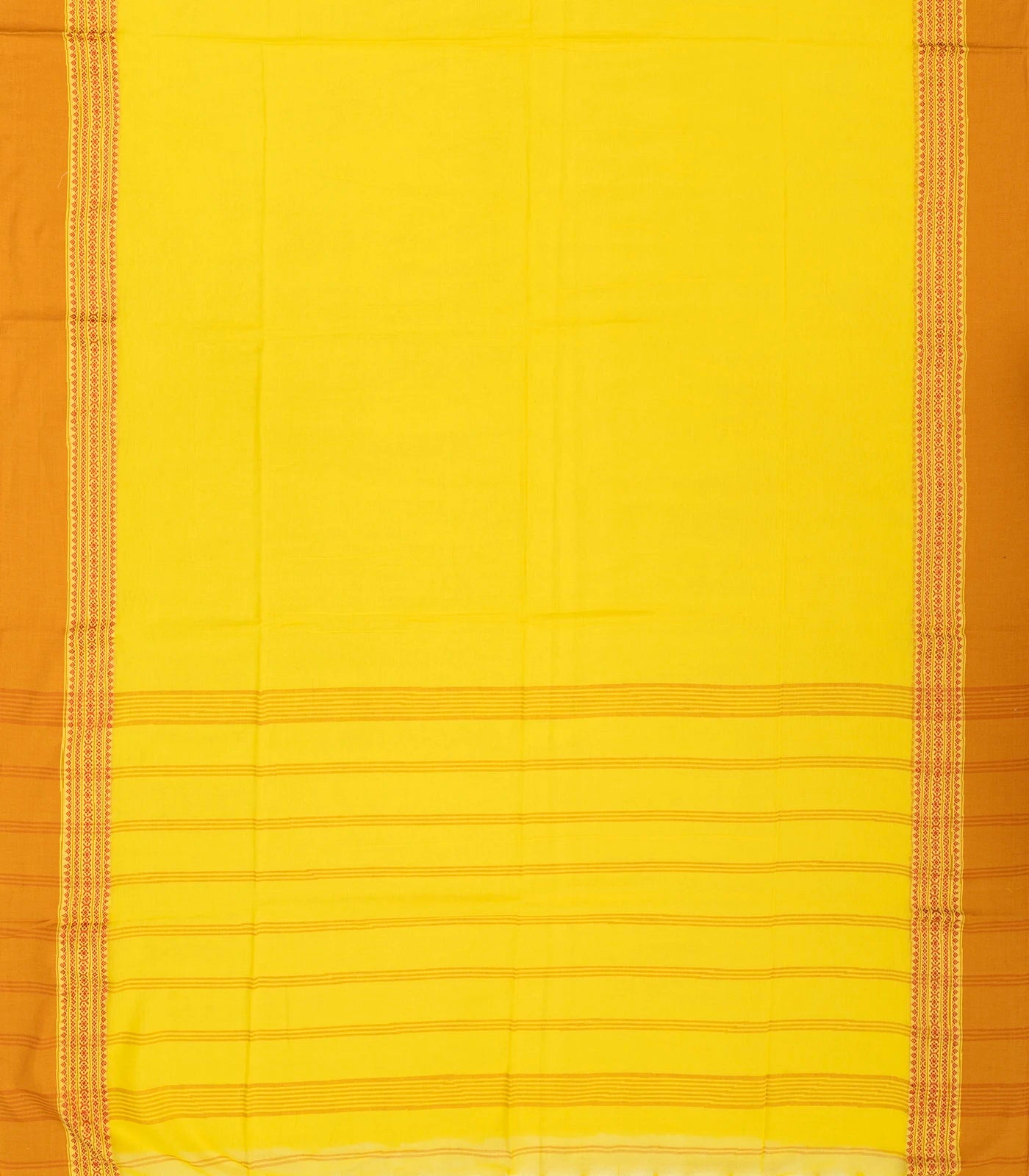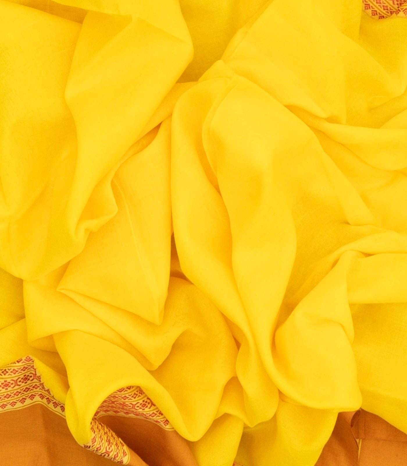 This woven bengal cotton saree is filled with plain yellow body along with contrast border and pallu