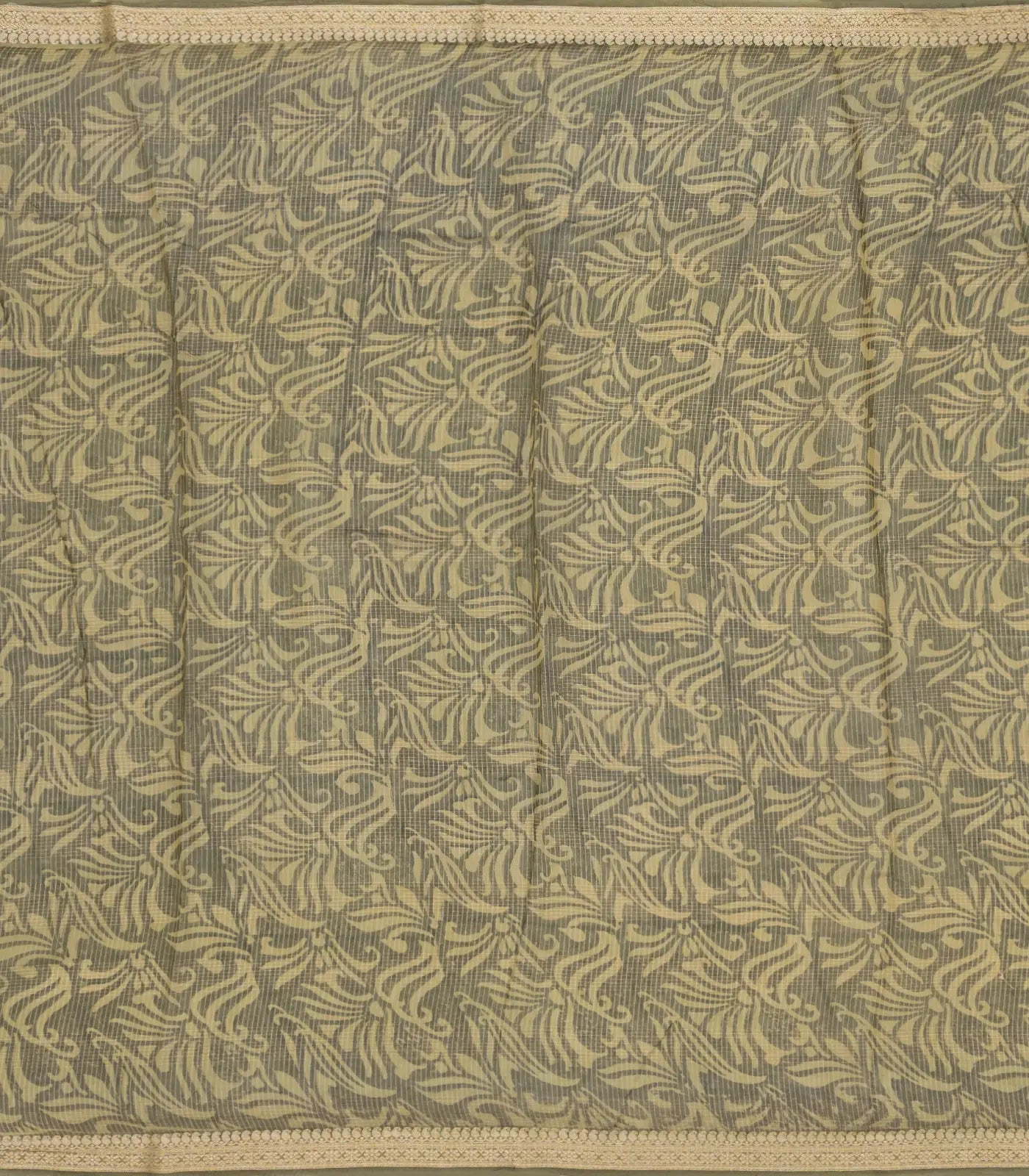 This woven chanderi cotton saree is filled with printed floral motifs in yellow body along with border and pallu