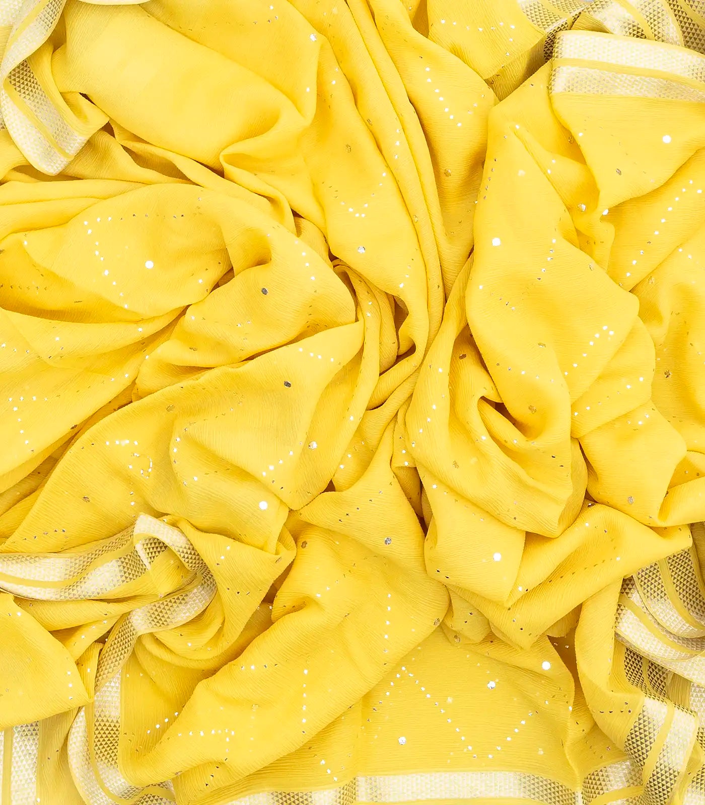 This woven mysore silk saree is filled with sequin work in yellow body along with zari border and pallu