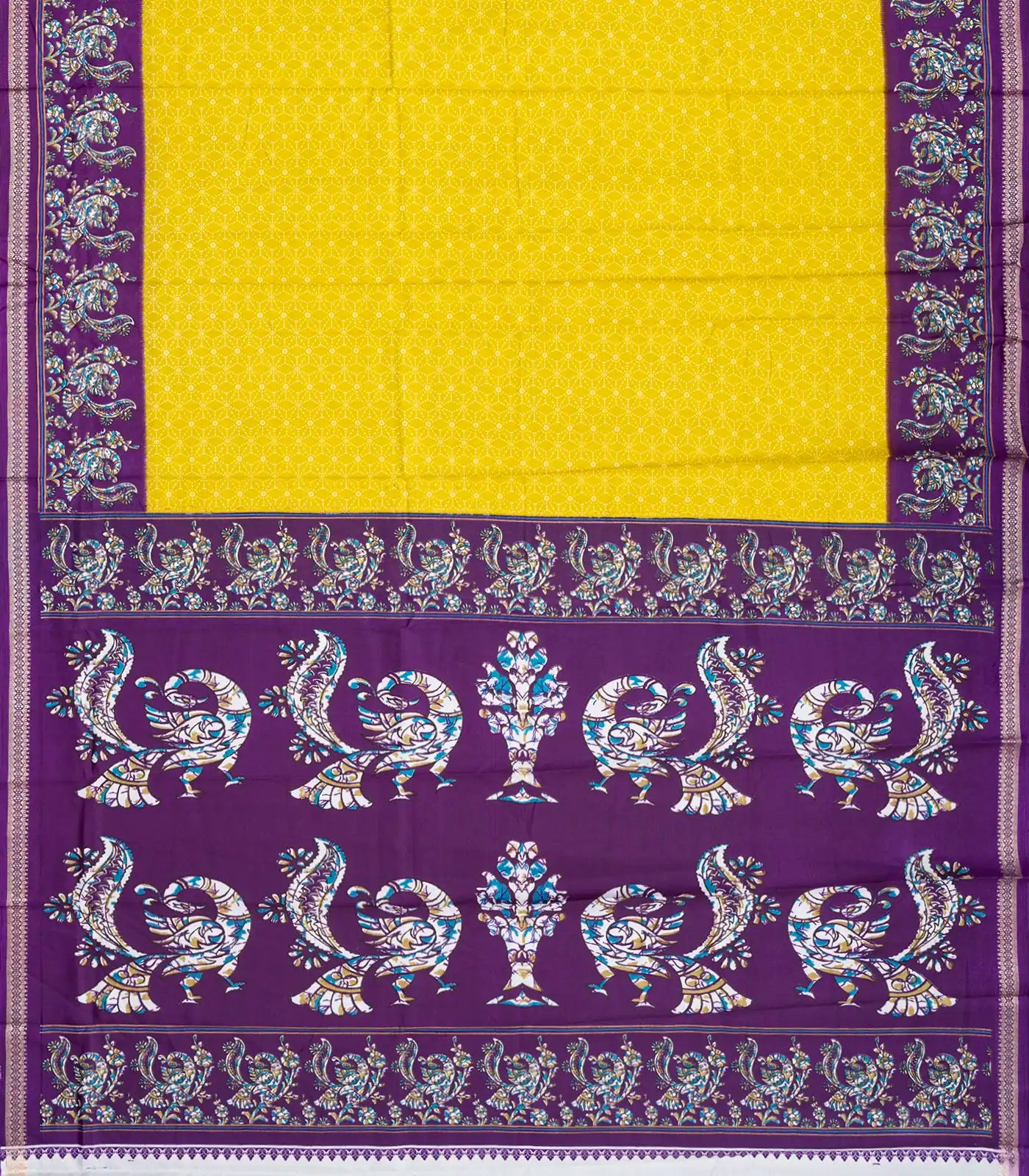 Yellow Woven Synthetic Crackle Saree With Printed Geometric & Bird Motifs-BL4518